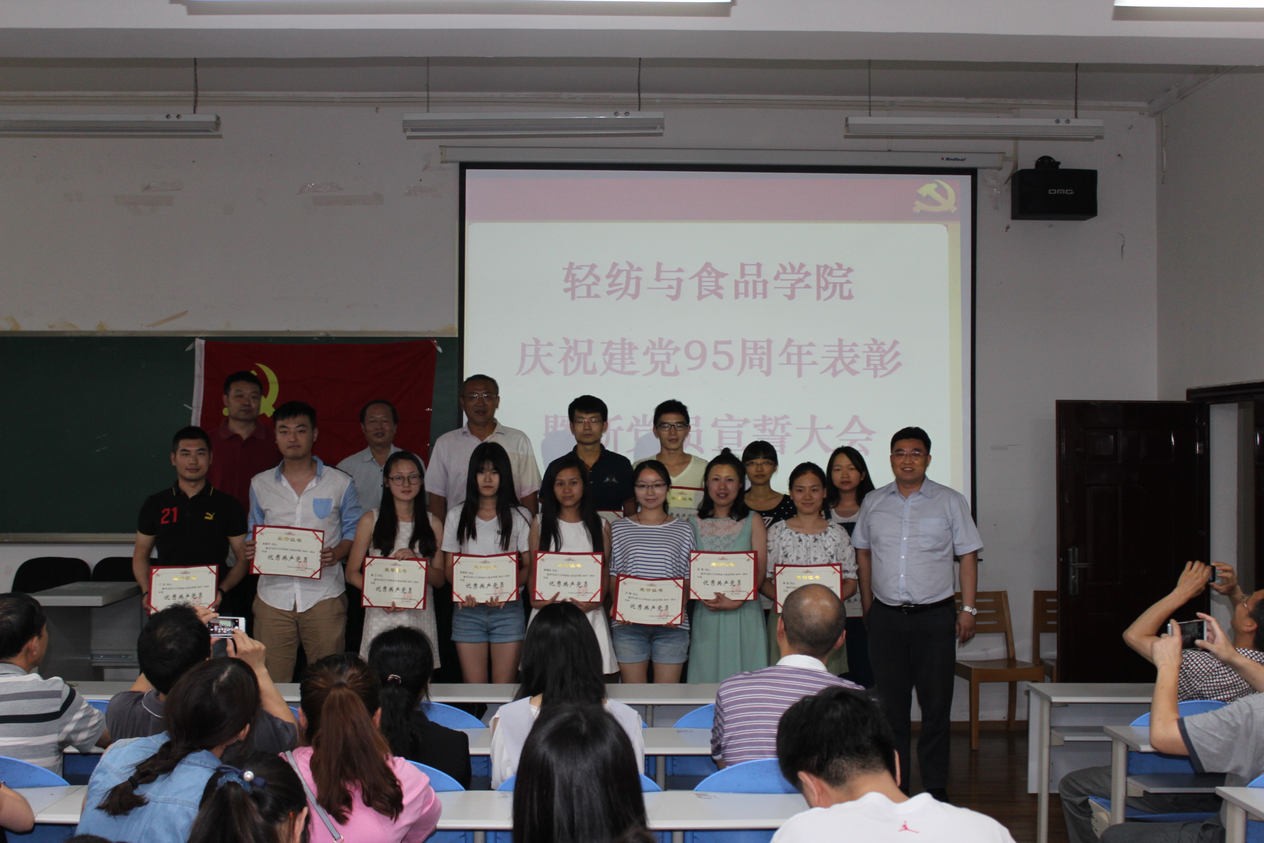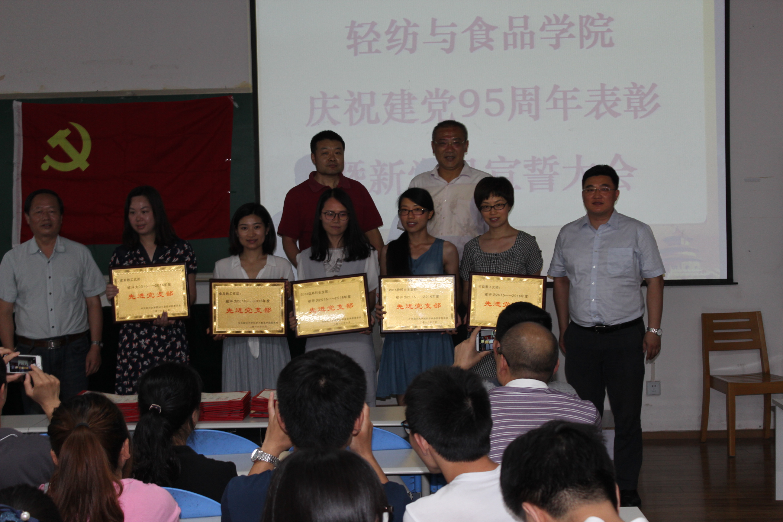 6月12日下午,成年人电影 全体党员在纺工副楼205会议室举行建党95周年表彰暨新党员宣誓大会。会议由院长何有节教授主持。他向获得表彰的支部和师生表示祝贺,希望他们再接再厉,再创辉煌。赵毅书记发表了热情洋溢的讲话,他说,今年是国家十三五的开局之年,是学校一流学科和一流专业建设之年,也是成年人电影 制定新的发展目标,实现跨越式发展的起步之年,成年人电影 党委将紧紧团结和依靠全体党员和全院师生,坚持“围绕中心抓党建,抓好党建促发展”,高举中国特色社会主义的伟大旗帜,以邓小平理论和“三个代表”重要思想为指导,深入贯彻落实科学发展观,认真学习习近平总书记系列讲话精神,认真开展“两学一做”专题教育,充分发挥基层党组织的核心作用,党支部的战斗堡垒作用和党员的先锋模范作用,不断加强理想信念教育,牢记党的宗旨,不辱使命,以实际行动来迎接建党95周年,为早日实现学校建设一流综合性大学的奋斗目标而贡献自己的力量。 接着,肖凯副院长宣读了获奖名单,成年人电影 领导为获奖的支部和师生党员颁奖。2014级硕士生党支部书记江明芳同学,作为优秀党员代表发言。最后,刘晓虎副书记作为领誓人,主持了新党员的宣誓仪式。大会圆满落幕!