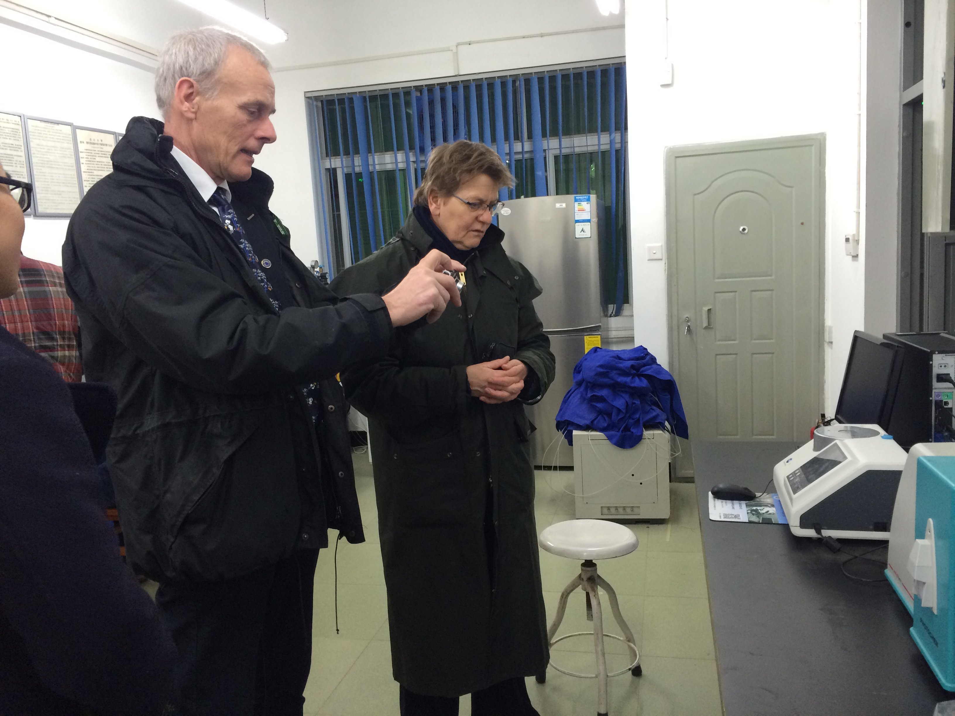 副院长兼食品工程系系主任何强教授、实验室主任吕远平副教授、曾维才老师、钟凯老师详细介绍了我校食品学科的发展情况。钟凯老师带领两位讲师参观了我系罐藏实验室、烘焙实验室、酒工艺学实验室、微生物实验室、分析实验室。通过此次交流,双方进一步落实2+2本科联合培养项目中的一些具体事宜,Jannie女士和Yappie先生还将对报名参加联合培养项目的学生进行为期5天的考查。