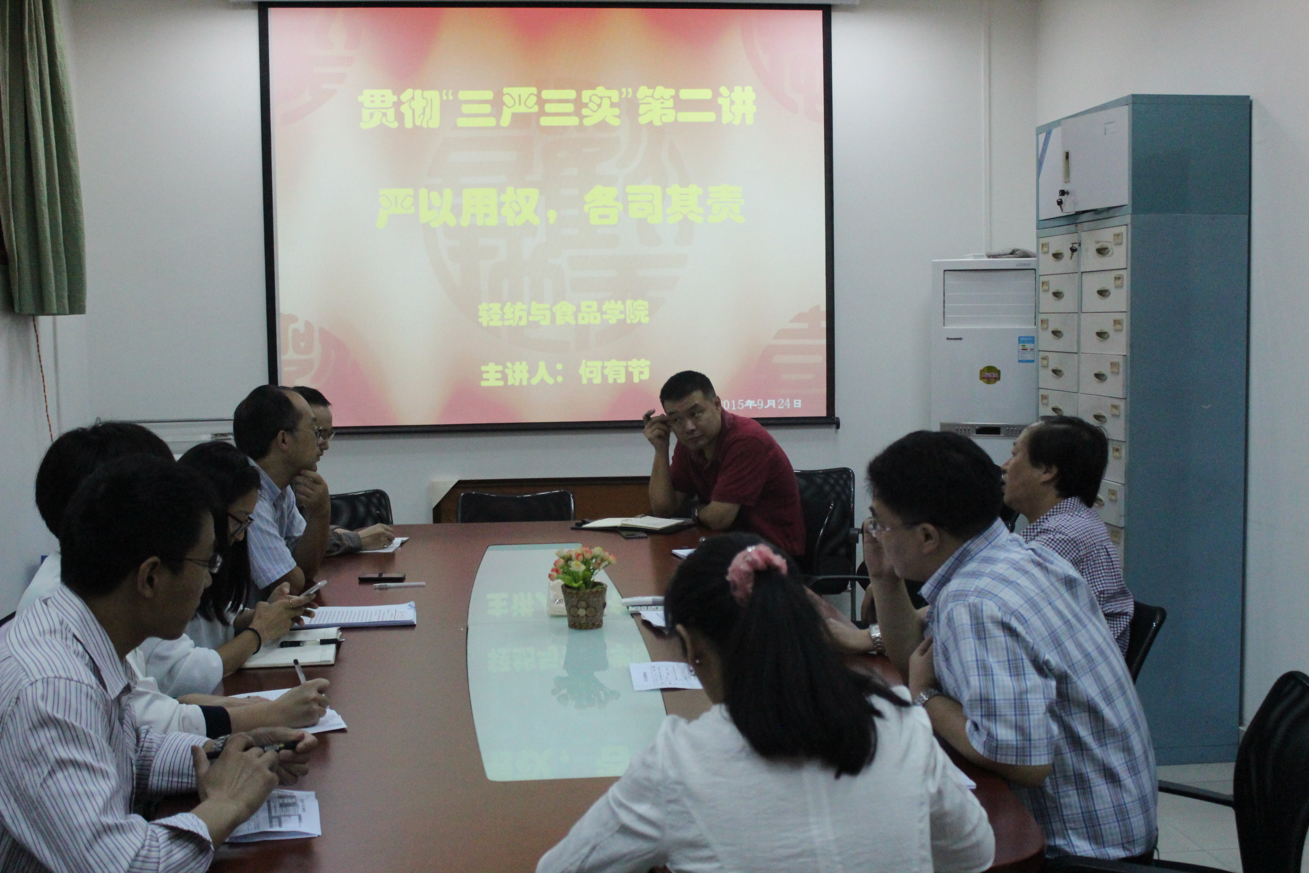 9月24日上午,成年人电影 在纺工副楼201会议室举行“三严三实”第二讲“严以用权”专题讲座。本次讲座由院长何有节教授主讲。成年人电影 中层领导干部、院长助理、科级干部、教职工党支部书记和学生党支部书记参加此次讲座。何院长以“严以用权、各司其职”为题,从个人对“严以用权”的理解,自身存在问题的分析和整改思路三个方面作报告。报告深入浅出、剖析深刻,与会人员结合自身工作谈了谈学习这个专题的感触。通过本次讲座,与会人员都表示对本专题有了更深入的体会和理解。