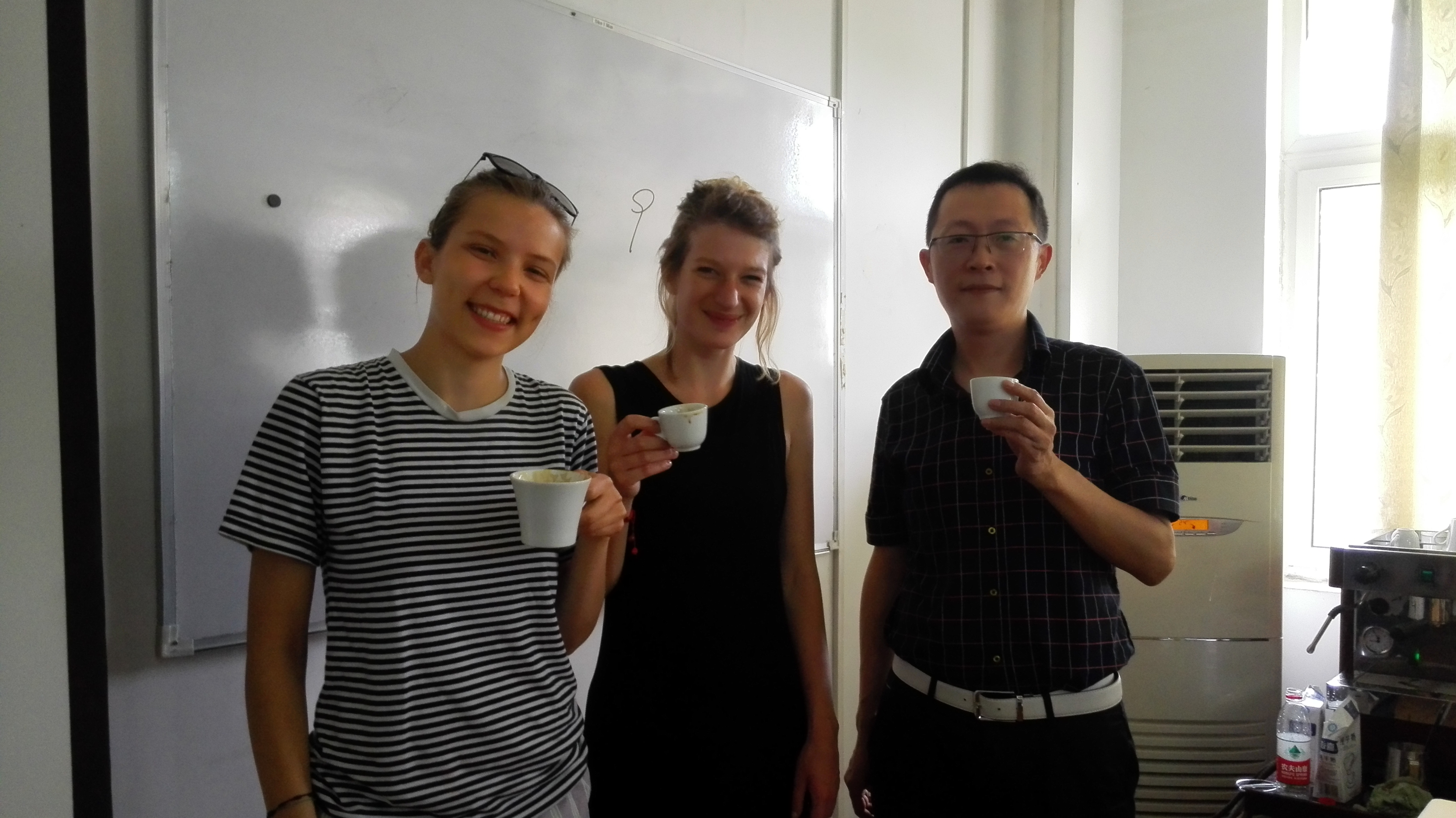 望江校区纺工楼副楼205教室,是赵敏老师的蜀绣概论及绣花实践课程。赵敏老师首先为国际交流营的同学们介绍了蜀绣的历史和文化,之后详细地讲解并演示了蜀绣的几种基本针法,并指导学生们进行练习。传统的丝线和超级纤细的羊毛针让绣花的第一个过程:穿针都变得无比艰难,但是在老师的帮助下,同学们先后开始了练习,整个教学过程,理论与实践相结合,让大家非常投入。德国籍的Mary和荷兰籍的CAS悟性很强,第一次接触蜀绣就能掌握要领,得到了赵老师的表扬。中外学生对蜀绣非常感兴趣,直到老师下课他们都还不舍得离开教室。课间休息的时候,Doreth和Maria还去咖啡鉴赏课上品尝了卡布奇诺和意式特浓咖啡,她们觉得咱们的咖啡非常好喝,跟他们在家乡喝到的味道很像。咖啡鉴赏课的汪凯老师给她们介绍说,咖啡豆是在成都烘焙的,今天品尝到的都是由持有中国中级咖啡师证的咖啡师煮的,烘焙好七天以内的新鲜豆,让她们惊叹不已。下午国际交流营的同学一起乘车前往充满浓郁中国民国风情的小镇——安仁古镇。一路上,他们兴致勃勃的欣赏着窗外优美、静谧的田园风光。到达古镇后,曲折的小桥、潺潺的流水、木制的建筑对他们来讲是文化的碰撞更是一场视觉的盛宴。除了中华文化,他们尤其欣赏中国工艺品的设计思路,雕花的木门、镂空的金玉银器、精美的织物和服饰都是他们镜头里的“尤物”。中国传统美食尤其是风味小吃也同样极具诱惑力。整个一天的行程下来大家都非常开心,无论是专业的知识还是中华文化都收获不小。相信通过几天的磨合和交流,双方友谊也会更上新台阶。