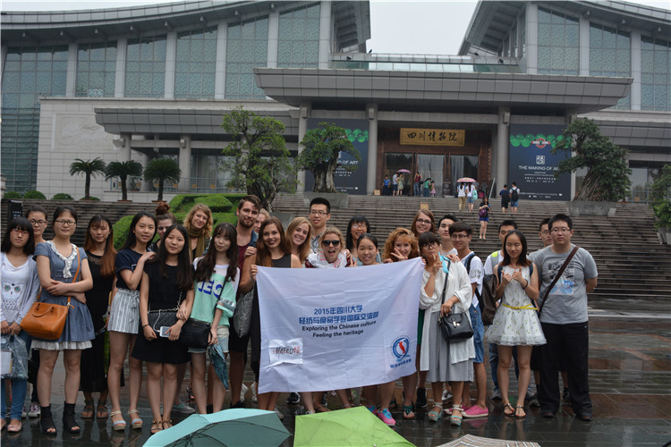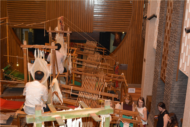 今天的行程对于中外营员都是充满期待和惊喜的,既有历史的积淀又有时尚的冲击,让营员们大呼过瘾。早上一行20余人乘车来到蜀江锦院,其前身是拥有50多年历史的成都蜀锦厂,隶属于成都蜀锦织绣有限责任公司。同学们在英文解说员的带领下,参观了全国唯一的一家保有全套蜀锦手工制作工艺的场馆,对两千多年的蜀锦传统织造技艺赞叹不已。蜀江锦院致力于丝绸、织锦的研究、古蜀锦的保护、复制;现代蜀锦装饰和实用功能的探究、少量历代蜀锦精典纹样的限量制作发行,馆内丰富的藏品让营员们目不暇接。