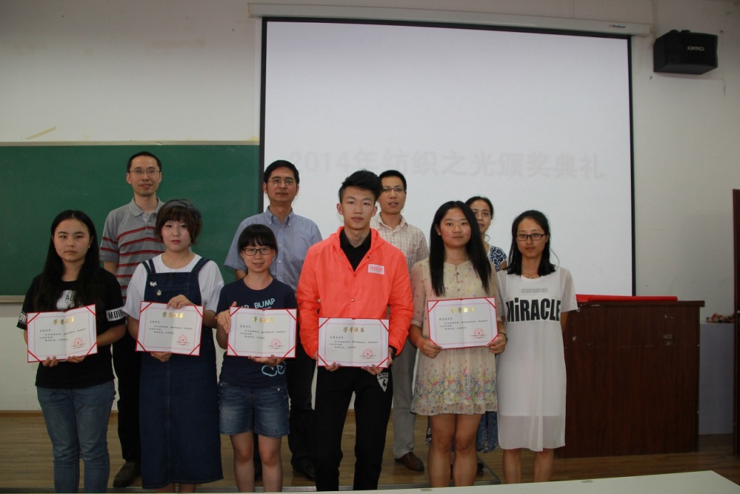 院长助理郭荣辉副教授参加了大会。颁奖大会由院学生科科长冯国涛老师主持。首先,纺织与服装工程系党支部书记陈胜老师宣读了2014年纺织之光教育基金会表彰决定并宣读了获奖名单。到场的各位老师为获奖学生一一颁奖。最后,由兰建武教授介绍了“纺织之光”科教奖的背景、意义及影响,并为获得奖励的学生表示祝贺,勉励大家继续努力,以更优异的成绩回报纺织教育基金会,汇报行业对高校人才培养的重视。同时,兰建武教授也获得了2014年纺织之光奖教金,再此表示祝贺。