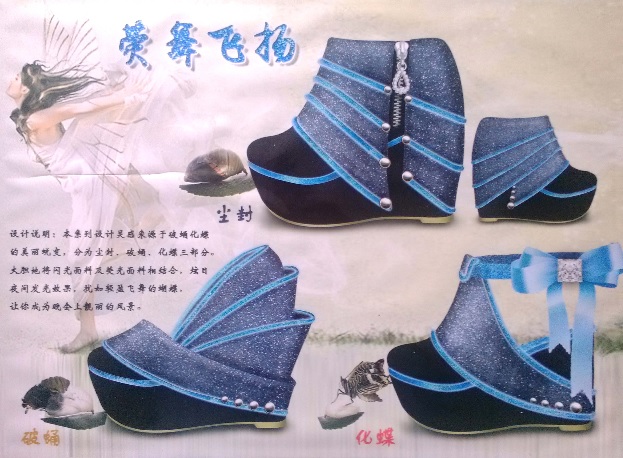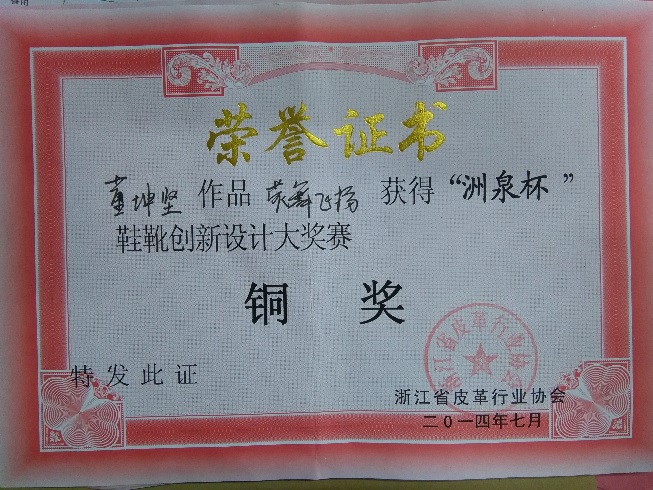 日前,由浙江省皮革行业协会主办的“桐乡·洲泉杯”鞋靴设计大奖赛”落下帷幕,比赛组委会共收到了来自几百位企业和高校选手的作品。本次比赛分为效果图部分和实物鞋制作两个部分,成年人电影 2010级轻化工程专业革制品设计方向的同学在效果图部分比赛中获得了优异的成绩:其中董坤坚同学的作品《荧舞飞扬》获得了大赛铜奖,此外还有部分同学获得优秀奖。(姚云鹤)