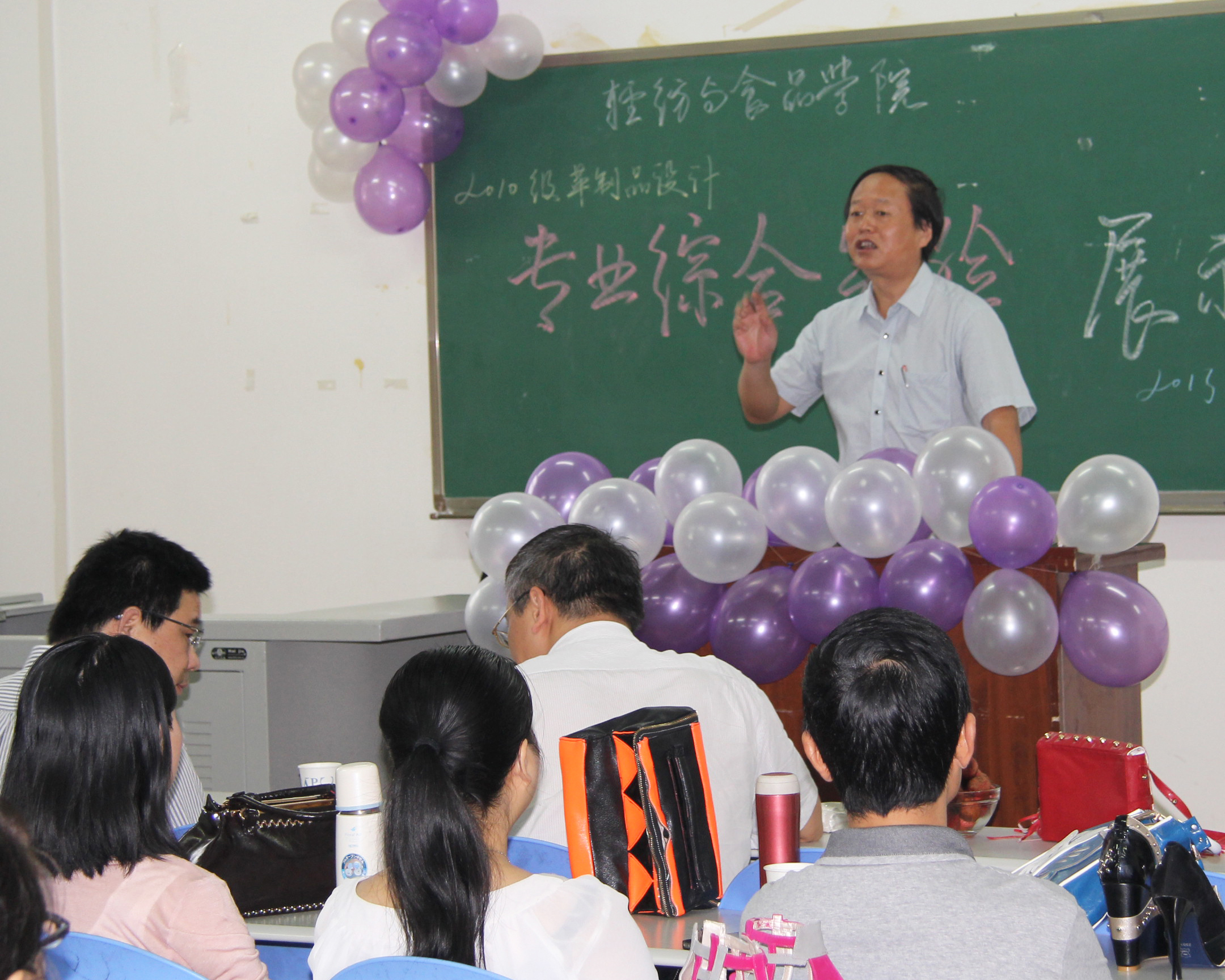 党委赵毅书记、院党委副书记刘晓虎副教授、生物质与皮革工程系副主任彭必雨教授、革制品教研室徐波主任、革制品教研室杨璐铭副教授、姚云鹤、曾琦老师以及2010级辅导员李晓秀老师等。此外,到场的还有2010级、2011级革制品设计方向的全体同学,以及2010级轻化工程制革和商贸方向,以及轻工生物技术的部分同学。