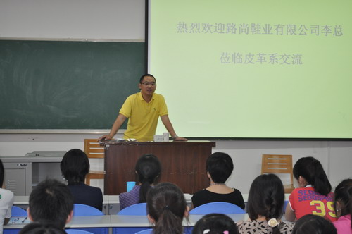 皮革系,与革制品设计专业的本科生、专科生进行了交流。李总从自己的创业开始讲起,详细的介绍路尚品牌的发展历程和个人创业的艰辛故事。路尚到今天的成就全靠智慧和劳动换来的。约60多名学生参加了交流会。