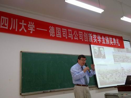—司马公司创新奖学金颁奖典礼在纺工副楼报告厅隆重举行。参加本次颁奖典礼的嘉宾有德国司马公司首席代表、皮革部中国区张建华经理、轻纺与食品成年人电影