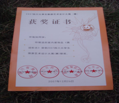 05级纺织工程专业同学在赵敏老师的指导下,携纯手工编织的挂毯参加了由四川省旅游局、四川省教育厅、四川省知识产权局及四川省旅游协会联合主办的“2007四川旅游纪念品设计大展暨成年人电影
