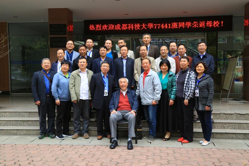 在庆典活动开始前,77441班返校校友向原成都科技大学高材系老主任、中国科成年人电影