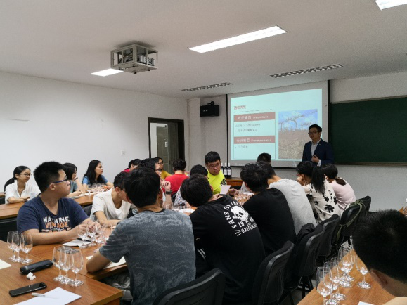 徐老师从葡萄种植、葡萄酒酿造技艺和葡萄酒品鉴等方面进行了详细的讲解。通过徐老师的讲解,同学们对葡萄的品种、质量及酿造工艺对葡萄酒的品质的影响有了深刻认识。最后同学们在徐老师的专业讲解和演示下,体验了一番专业品酒过程,并对白起泡葡萄酒,希拉谷庄园西拉红葡萄酒,幸福雷恩桃红葡萄酒和长城五星干红葡萄以及长城五星干红葡萄酒进行了品评。
