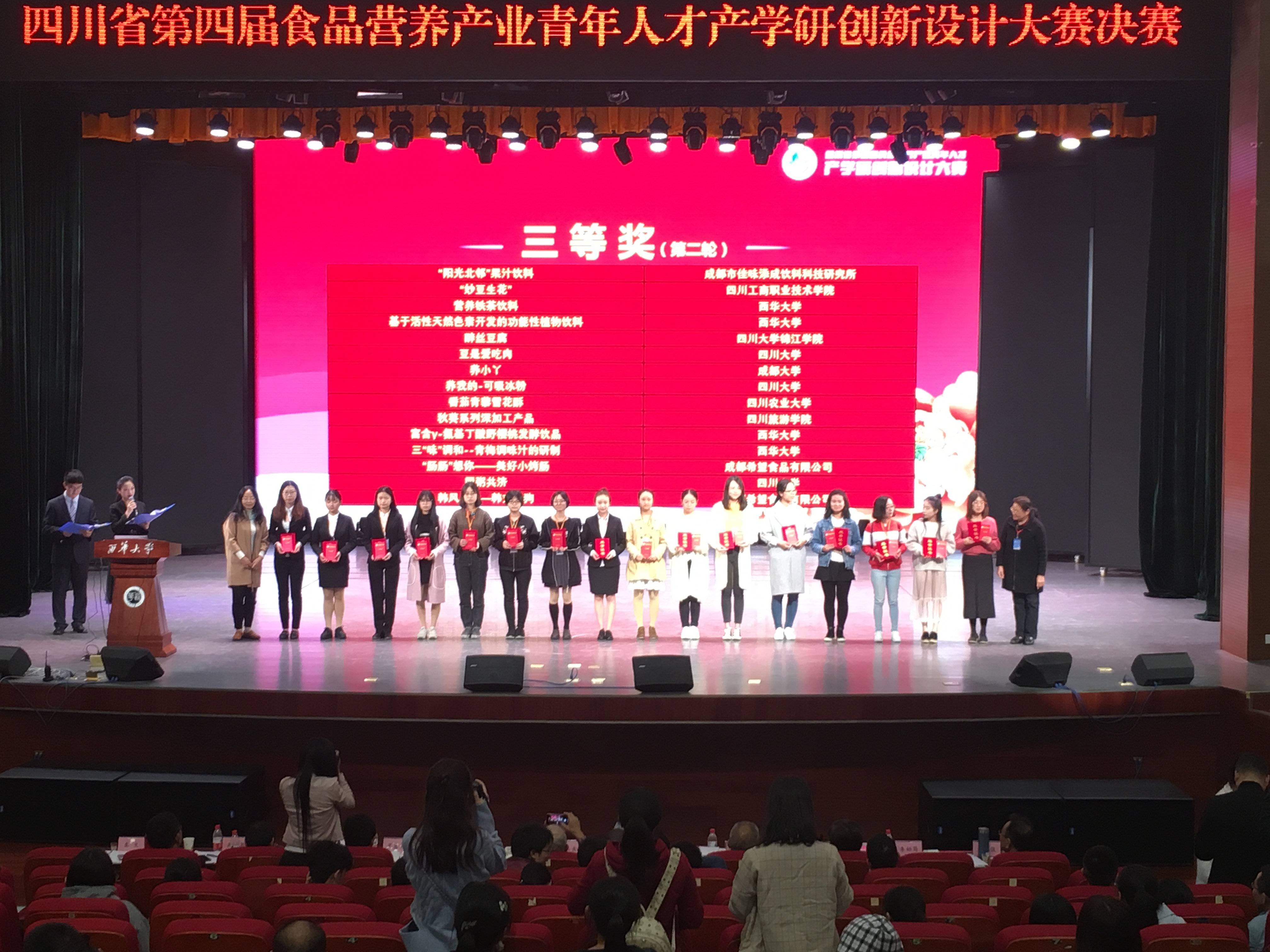 为激发青年人才对食品新产品创意、研究、开发的热情,促进食品与营养相关领域的创新人才成长,由四川省食品科学技术学会、四川省营养学会主办;中国科学技术协会、四川省科学技术协会指导;四川大学、西华大学承办的2018“四川省第四届食品营养产业青年人才产学研创新设计大赛”于2018�10�13日至14日在西华大学顺利举办,圆满落幕。本次大赛也被列�2018“大众创业,万众创新”全国双创周四川预热项目�