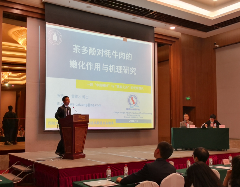 食品工程系教师曾维才博士应邀出席大会并于大会青年论坛做主题报告。本次大会探讨了我国肉品行业发展所面临的问题、机遇和挑战,为决策政府部门提供新的参考信息,展示了肉类科学研究的新成果、新技术、新装备,为肉类生产企业和研发人员提供新商机、新理念。同时,国内外畜产品加工领域的480余位学者参加会议,加强了我校食品学科与国内外兄弟院校之间的交流与联系。