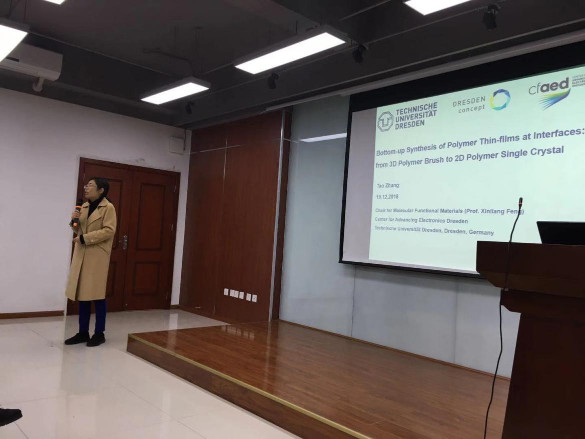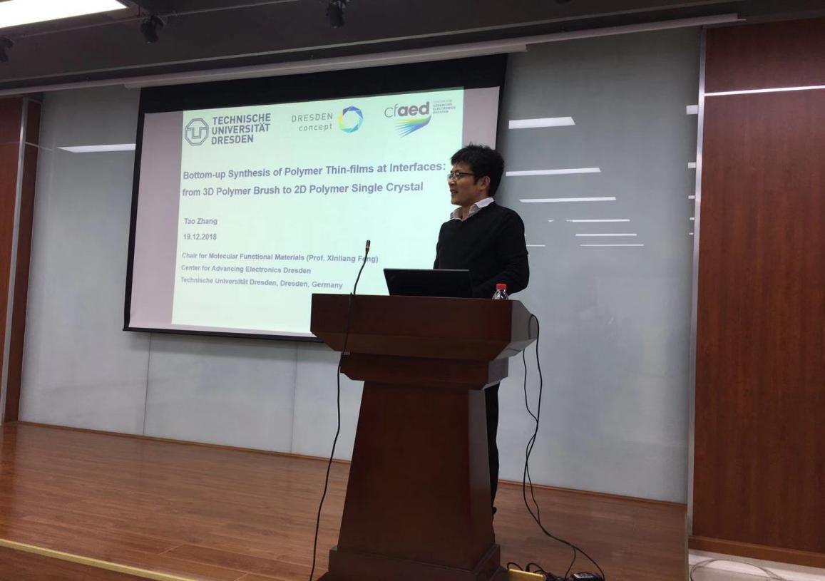 “生物质科学与工程”青年论坛第二期在皮革楼215报告厅举办。本次论坛邀请到轻化工程2008级校友、德累斯顿工业大学的张涛博士,做题为“Bottom-up Synthesis of Polymer Thin-films at Interfaces: From 3D Polymer Brush to 2D Polymer Single Crystal”的学术报告。报告会由生物质与皮革工程系主任林炜教授主持。