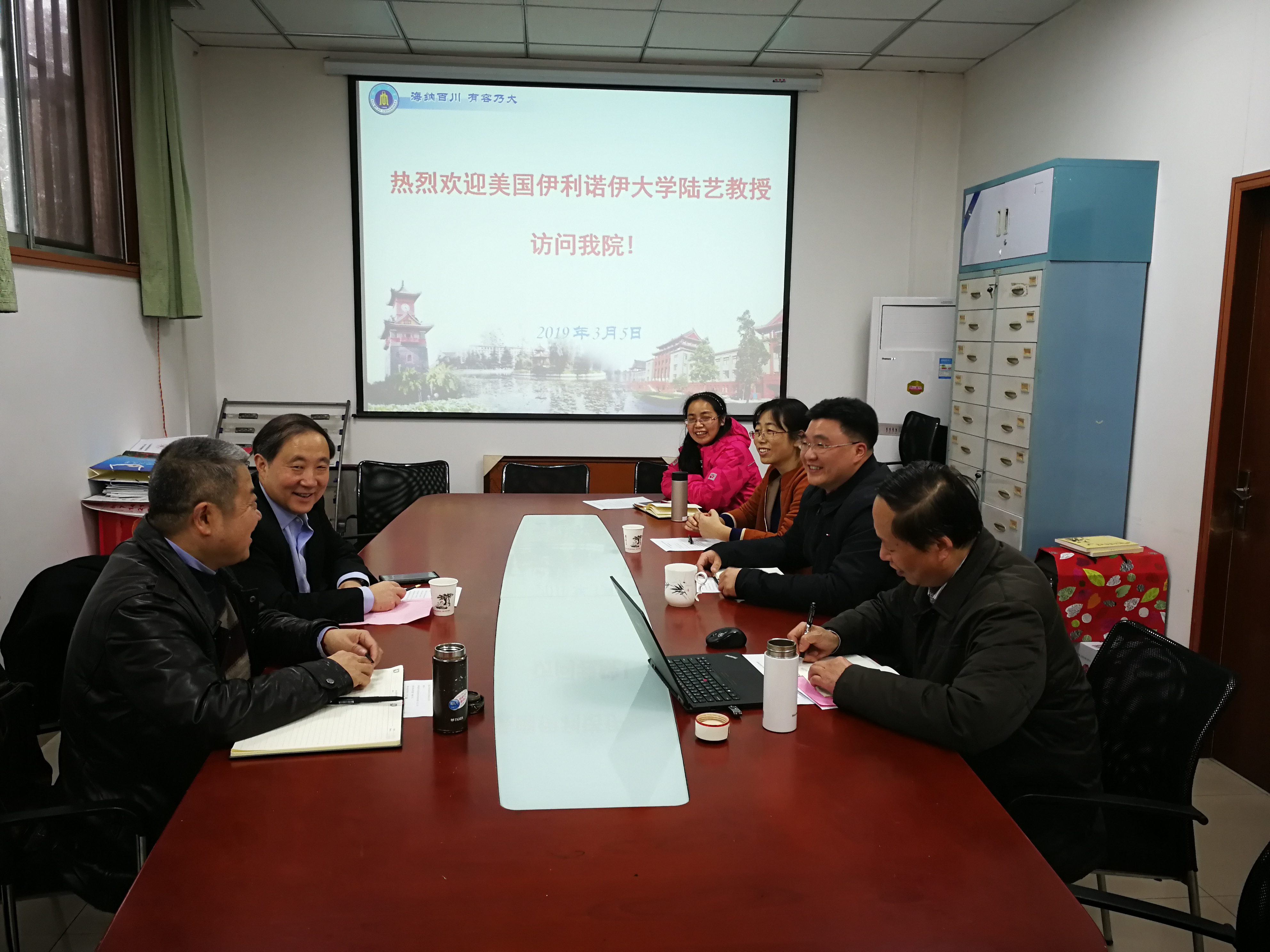 刘晓虎书记首先对陆艺教授的来访表示热烈的欢迎,对但卫华教授所做的前期工作表示感谢,并就校院的人才工作做介绍。何有节院长就校院的整体情况向陆教授做了详细介绍。与会人员就专业、学科、人才、访学等方面与陆教授做了深入交流。