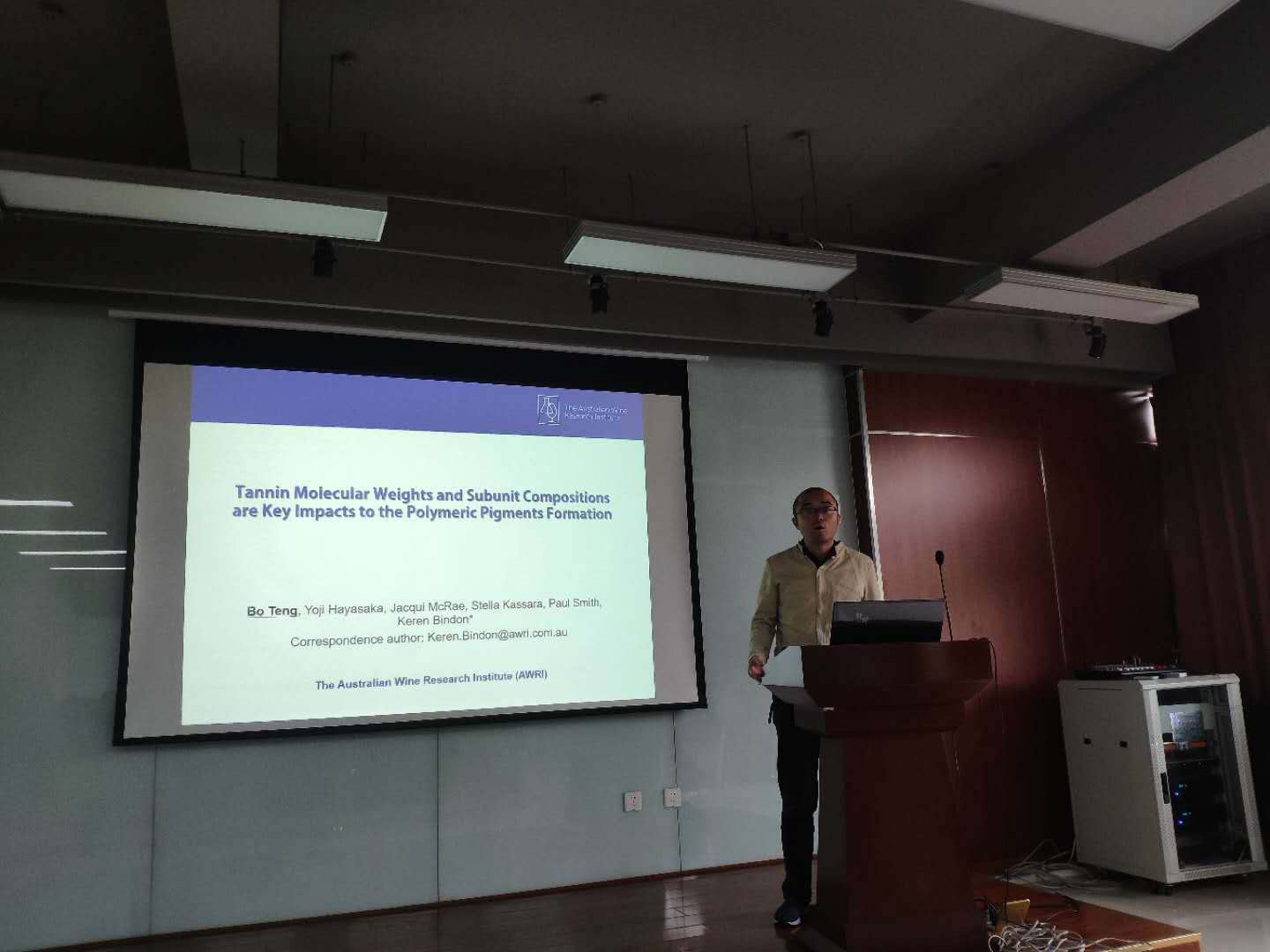 师生在植物单宁领域的研究思路和方法,引起了与会师生的浓厚兴趣。同时滕博副教授还就葡萄酒酿造、品鉴等内容进行了深入浅出的报告。