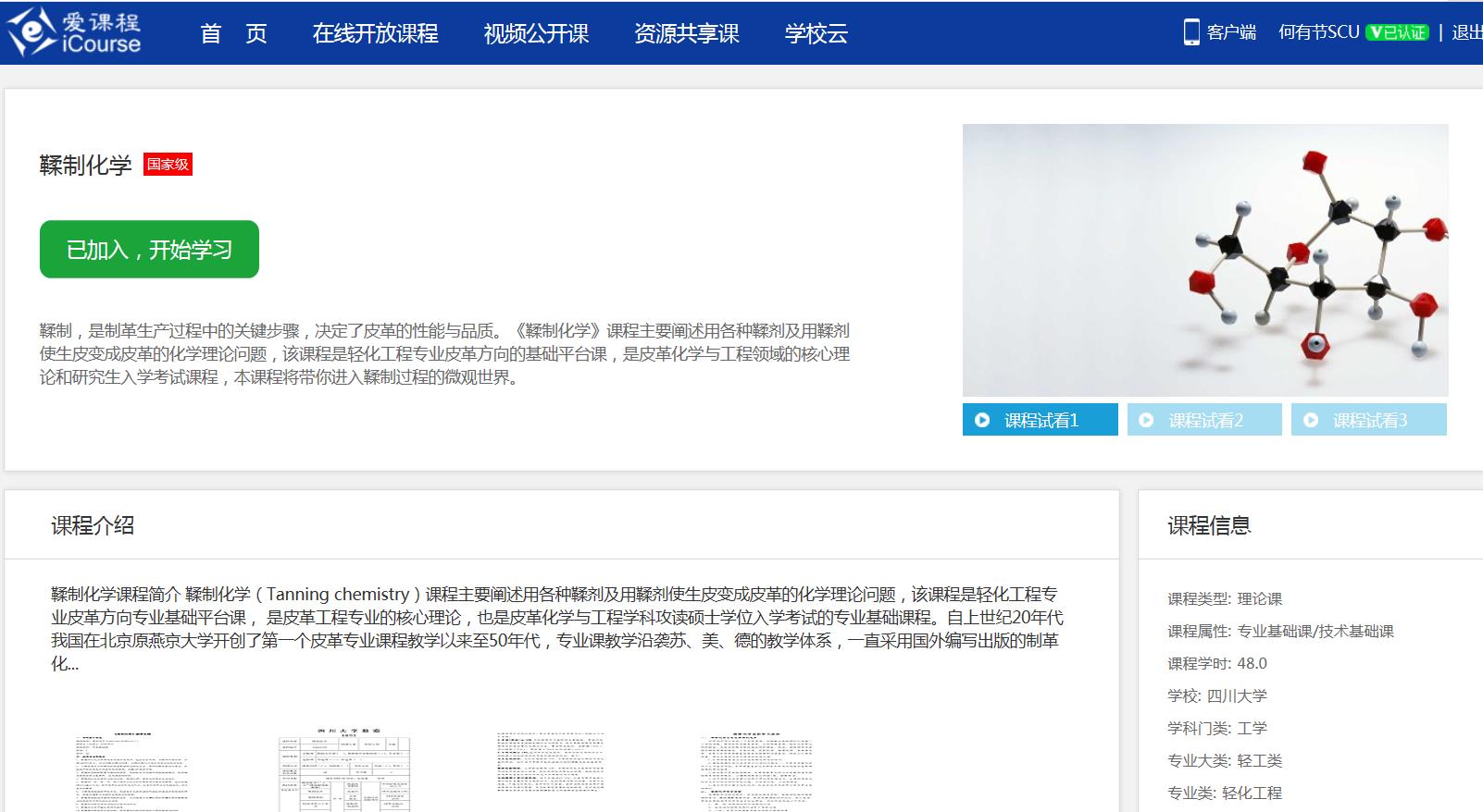 我院国家级精品资源共享课程和慕课《鞣制化学》在推荐之列