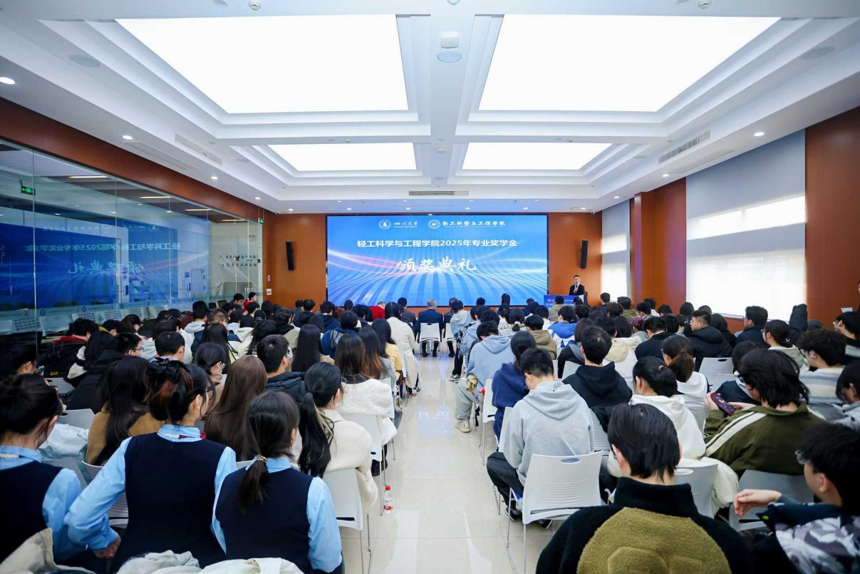 11�28日下午,轻工科学与工程学�2025年专业奖学金颁奖典礼在皮革楼互联网中心举行。中国皮革协会副理事长陈占光、德国司马化学有限公司皮革部中国区总经理张建华、斯塔尔精细涂料有限公司皮革事业部中国区区域销售经理涂刚、天津春发生物科技集团有限公司项目经理董婷等企业嘉宾,学院党委书记李天富、院长彭必雨,副院长周建飞、迟原龙等院领导,生物质与皮革工程系系主任林炜、副系主任程海明,食品工程系系主任吕远平等,与全体获奖师生共同参加典礼。学院党委副书记姜新主持�