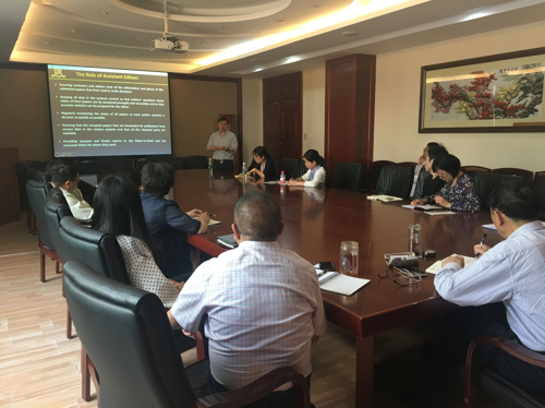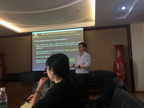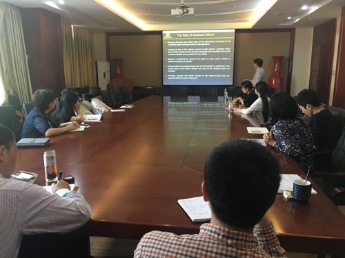应成年人电影 轻纺与食品成年人电影 和《皮革科学与工程》杂志社邀请,香港中文大学化学系魏涛教授(Prof. To Ngai)于2018年4月4日到成年人电影 进行学术交流,并就杂志社英文期刊创刊事宜与编辑部及相关老师座谈,做了一场题为“Managing a High Reputation Journal: Aperspective from A Scientific Researcher”的精彩报告。座谈会由生物质与皮革工程系系主任林炜教授主持,轻纺与食品成年人电影 院长何有节教授介绍了魏涛教授的研究工作经历并致欢迎词。会上魏涛教授主要分享了他在担任ACS旗下期刊Macromolecules主编(吴奇教授)助理(Assistant Editor)工作两年期间,有关审稿过程管理、编辑部主要成员职责以及怎样提高期刊的学术声誉等方面的经验;并从一位研究学者的角度对如何创办一个高水平且有持续发展活力的英文学术期刊提出了自己的建议和看法。《皮革科学与工程》杂志社社长陈武勇教授、编辑部陈玲主任、陈慧副教授、王亚楠副教授等老师就英文期刊在创办工作及与国外出版公司合作中可能遇到的问题与魏教授进行了比较深入的讨论和交流,探讨了一些可操作性较强的应对措施。 魏涛:博士(PhD)、香港中文大学化学系教授。魏涛教授于1999年以一等荣誉毕业于香港中文大学化学系,之后师从吴奇院士攻读博士学位,于2003年获香港中文大学化学系化学博士学位;2003年-2005年在德国巴斯夫公司任职,2005年7-12月在美国明尼苏达大学做博士后研究;2006年1月起在香港中文大学任教,且在2006年1月-2008年1月期间担任高分子学科Macromolecules的副主编助理。2008年被聘为香港中文大学化学系助理教授,并于2012年和2017年分别晋升为副教授和教授。他的主要研究领域包括:高分子、胶体、软物质的设计和合成及其相互作用表征、纳米粒子合成与自组装、自组装理论与方法研究等。魏涛教授近年来在Angewandte Chemie、 Internationnal Edition、Macromole-cules、Soft Matter、Langmuir等国际核心学术期刊发表论文100余篇。