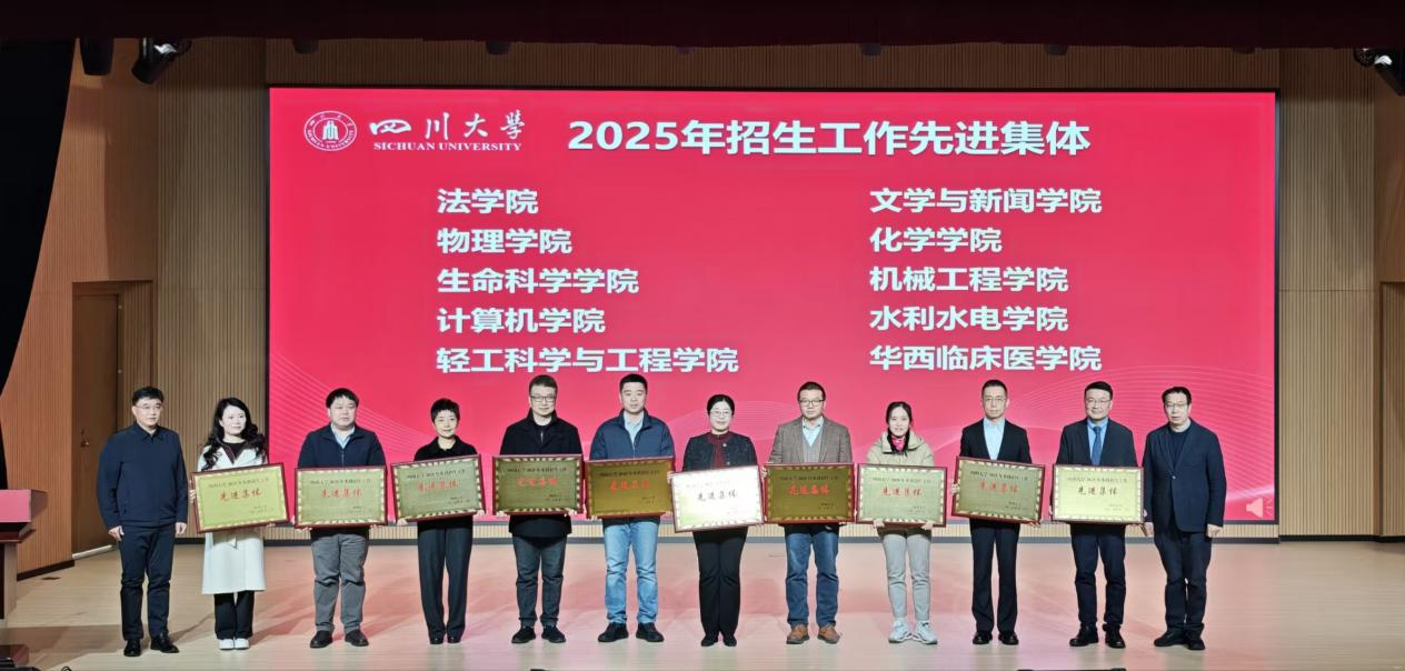 2025�12�17日,四川大学2025年本科招生工作总结会暨2026年招生工作启动会召开。会上,我院凭借扎实高效的工作表现,荣获�2025年招生工作先进集体”荣誉称号。这一殊荣既是学校对我院招生工作的高度认可,更是对全院上下凝心聚力推进招生工作的激励�