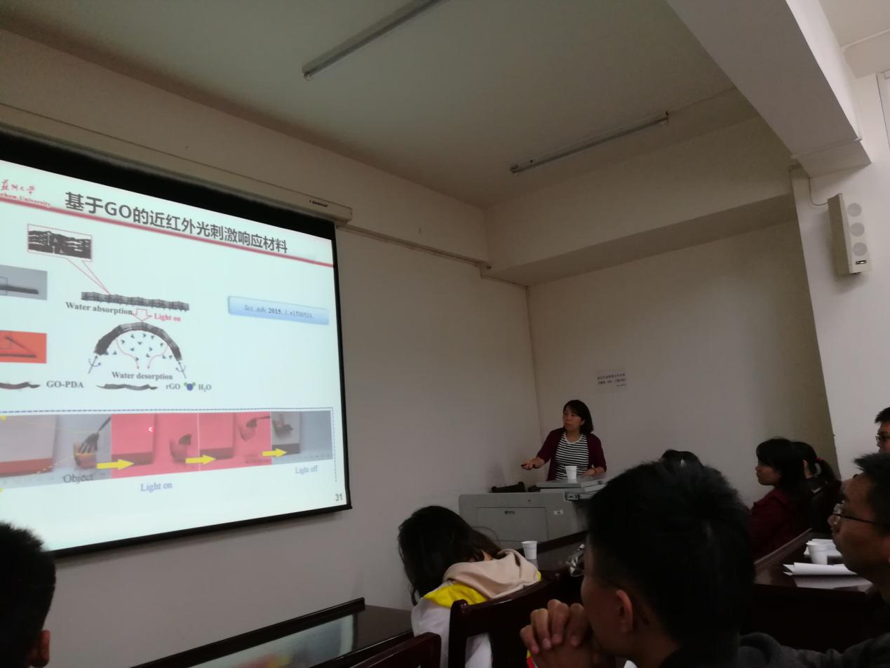 2017年10月14日,苏州大学材料与化学化工学部杨晓明副教授,在纺工楼321报告厅做了题为“氧化石墨烯/聚合物层状结构材料的设计、制备及应用 ”的学术报告。报告由成年人电影