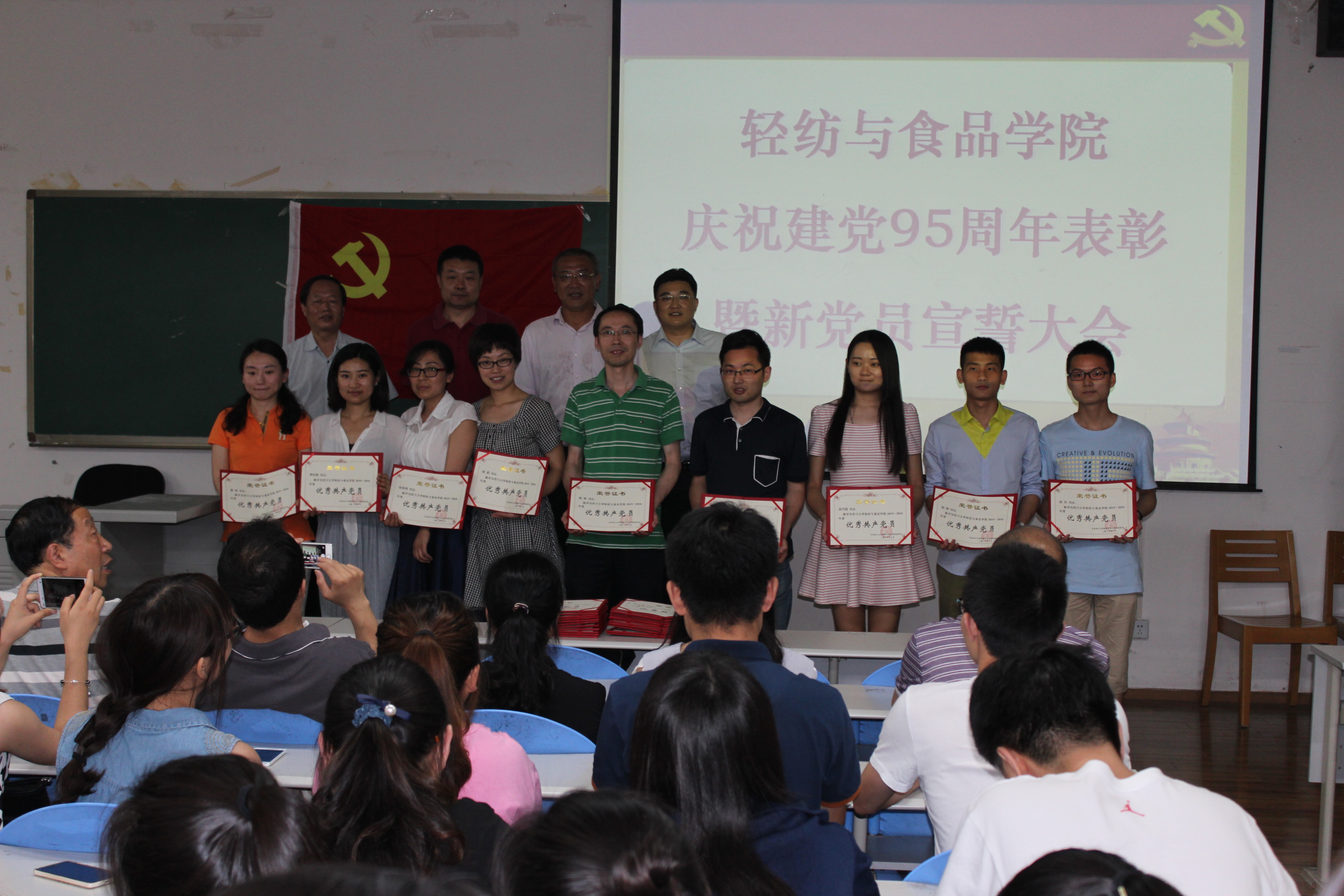 6月12日下午,成年人电影 全体党员在纺工副楼205会议室举行建党95周年表彰暨新党员宣誓大会。会议由院长何有节教授主持。他向获得表彰的支部和师生表示祝贺,希望他们再接再厉,再创辉煌。赵毅书记发表了热情洋溢的讲话,他说,今年是国家十三五的开局之年,是学校一流学科和一流专业建设之年,也是成年人电影 制定新的发展目标,实现跨越式发展的起步之年,成年人电影 党委将紧紧团结和依靠全体党员和全院师生,坚持“围绕中心抓党建,抓好党建促发展”,高举中国特色社会主义的伟大旗帜,以邓小平理论和“三个代表”重要思想为指导,深入贯彻落实科学发展观,认真学习习近平总书记系列讲话精神,认真开展“两学一做”专题教育,充分发挥基层党组织的核心作用,党支部的战斗堡垒作用和党员的先锋模范作用,不断加强理想信念教育,牢记党的宗旨,不辱使命,以实际行动来迎接建党95周年,为早日实现学校建设一流综合性大学的奋斗目标而贡献自己的力量。 接着,肖凯副院长宣读了获奖名单,成年人电影 领导为获奖的支部和师生党员颁奖。2014级硕士生党支部书记江明芳同学,作为优秀党员代表发言。最后,刘晓虎副书记作为领誓人,主持了新党员的宣誓仪式。大会圆满落幕!