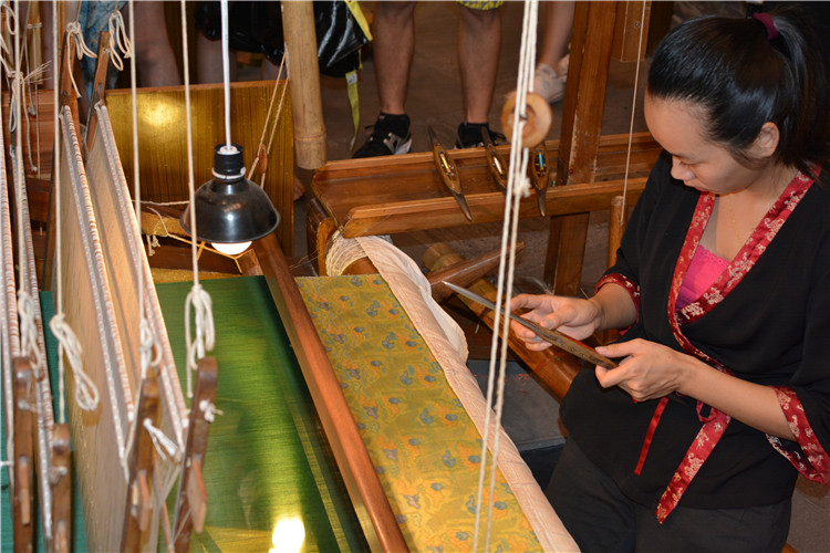 今天的行程对于中外营员都是充满期待和惊喜的,既有历史的积淀又有时尚的冲击,让营员们大呼过瘾。早上一行20余人乘车来到蜀江锦院,其前身是拥有50多年历史的成都蜀锦厂,隶属于成都蜀锦织绣有限责任公司。同学们在英文解说员的带领下,参观了全国唯一的一家保有全套蜀锦手工制作工艺的场馆,对两千多年的蜀锦传统织造技艺赞叹不已。蜀江锦院致力于丝绸、织锦的研究、古蜀锦的保护、复制;现代蜀锦装饰和实用功能的探究、少量历代蜀锦精典纹样的限量制作发行,馆内丰富的藏品让营员们目不暇接。