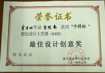 在今年秋季举行的“千祥杯”箱包设计大赛中,成年人电影 轻化工程革制品设计方向的本科同学喜创佳绩,获得银奖一名,最佳设计创意奖一名,优秀奖十名。其中,11级本科李小萌同学的作品“星”获得大赛银奖,10级本科李月双同学的作品“自然条”获得最佳设计创意奖,宋颂等十名同学获得优秀奖。