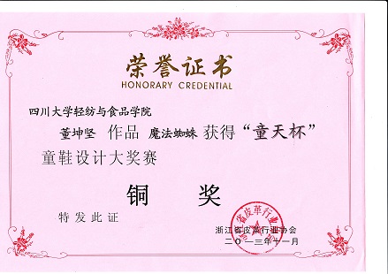 日前,由浙江省皮革行业协会主办、浙江宝路鞋业有限公司承办的第二届“童天杯”童鞋设计大奖赛落下帷幕。经过专家们的精心评选,最终确定了金银铜奖得主。成年人电影 革制品设计方向2010级本科的董坤坚的设计作品《魔法蜘蛛》获得了本次大赛的铜奖。期望同学们再接再厉,取得更优异的决赛成绩。姚云鹤供稿