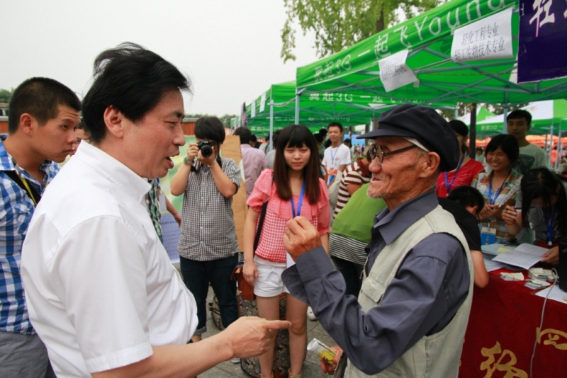 五个专业的就业情况及目前新生报到的情况。交谈后杨书记与老师和志愿者们一一亲切握手。