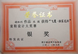 2011年 9月,由浙江省皮革协会主办、台州飞鹰鞋业有限公司承办的“飞鹰·独家龙”童鞋设计大奖赛落下帷幕。大奖赛的宗旨是面向社会,重点鼓励各大专业院校在校学生积极踊跃参赛、同时邀请国内童鞋生产企业、设计单位参赛,为浙江省乃至全国童鞋市场注入新的活力。
