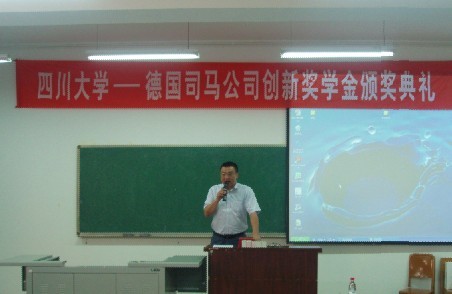 —司马公司创新奖学金颁奖典礼在纺工副楼报告厅隆重举行。参加本次颁奖典礼的嘉宾有德国司马公司首席代表、皮革部中国区张建华经理、轻纺与食品成年人电影