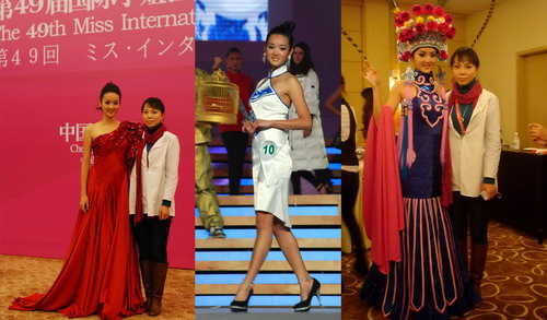 的时昱老师参与了作为世界三大选美盛典之一,号称“选美中的奥林匹克”的第49届国际小姐世界大会总决赛的服装统筹设计工作,其作品太阳神鸟青花旗袍作为66个国家佳丽的颁奖礼服出现在绚丽而充满成都元素的国际小姐总决赛的舞台上(图1)。决赛最后环节,在成都老茶馆特有的“茶博士”带领下,66个佳丽身着寓意金沙文化的白底青花纹样的旗袍造型再次登场,风姿卓越,款款盈动。此次的青花神鸟旗袍,分为四个不同款式,白色的主色调纯净安宁,加上古蜀文化中著名的金沙太阳神鸟图案,十分抢眼。由此,佳丽们所穿的青花神鸟旗袍也被定义为“成都式样”( 图2)。 除此以外,时昱老师还负责设计了中国小姐王芊的民族服装设计、泳装、晚装及青花旗袍设计(图3)。其中民族服装里,在结合王芊极具东方的气质基础上,注入了大量的中国元素,但又不失国际风采;凤仙领,中国蓝,如意纹样,西式裁剪与露肩礼服,大气的外观加上穆桂英扮相,给中国小姐王芊带来了飒爽英姿的戏剧造型及俏丽的色彩与装扮(图4、图5);晚装秀中,因为王芊的体型娇小,所以在服装设计中加以了大型的不对称荷叶灯笼袖设计,悬垂的皱褶与中国红把中国小姐王芊衬托得更具国际韵味(图6)… 时昱老师在本次活动中,从接到任务开始,经过构思、具体的工艺解决到最后的舞台展示,时间紧迫,工艺难度大,所有服装的整个设计与制作过程历时仅短短一个多月。当身着青花旗袍的冠军墨西哥小姐、亚军韩国小姐与季军英国小姐的合影被传向全球的时候,让所有辛苦的过程换成这值得纪念的瞬间(图7、图8)。 本次活动里,时昱老师还带领了一个服装专业的学生团队,除了以实践行为参与这样一个国际赛事以外,还让学生可以近距离观摩了解世界各国服装的风采与特殊工艺,以及较清晰感受这样的国际赛事的操作流程,让同学们也在本次活动的工作中有了极大的收获(图9)。作为66个国家颁奖服的4款青花旗袍将被收藏于轻纺与食品成年人电影