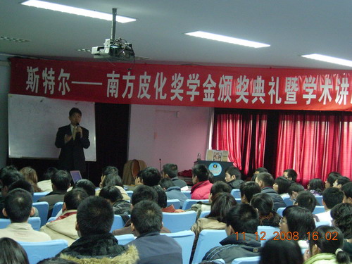 2008年12月11日下午14:00,斯特尔—南方皮化奖助学金颁奖典礼及学术讲座皮革楼二楼报告厅隆重举行。参加本次颁奖典礼的嘉宾有Stahl公司欧洲总部涂饰部门经理Peter教授;Stahl公司亚洲水场及染粉部技术经理李教授;Stahl公司华南区涂饰部销售经理谭子夜先生;Stahl公司涂饰部技术、98级皮革系校友涂刚先生;以及生物质与皮革工程系副系主任张宗才教授,王坤余教授。 颁奖典礼在一片欢呼声中举行,Peter教授首先致辞,表示了对获奖同学的祝贺,并希望他们再接再励,争取更加优异的成绩。接下来Stahl公司为我们进行了长达4小时的学术讲座,现场座无虚席,同学们踊跃提问,让讲座气愤相当热烈。讲座分为两个部分进行,首先是由Peter教授为同学们作喷涂方面的知识讲座,1个小时的讲解结束后,还带领同学们到资料室现场参加、亲自感受了由Stahl公司专门从欧洲带过来的100多张皮革样品,各种风格、不同种类的皮革样品让同学们眼花缭乱,也深深体会到了皮革喷涂的艺术性与高雅性。接下来由李教授为同学们做了水场方面的讲座,李教授深入浅出,讲解细致,让同学们对水场的操作有了全面的了解与更深的体会。讲座结束以后,Stahl公司还为参会同学赠送了精美的礼品。本次学术讲座的成功举办,相信让同学们大开眼界,对书本的理论知识有了更深的理解,也对皮革行业多了一份热忱与期待。轻纺与食品成年人电影
