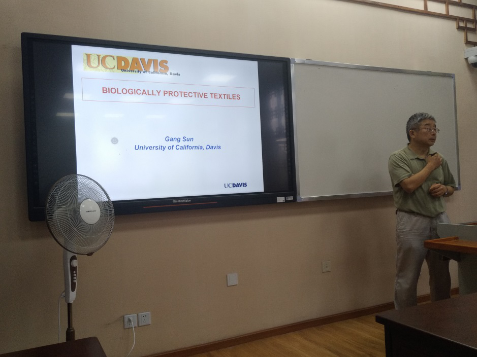 加州大学戴维斯分校孙刚教授应邀在“国际课程周”期间为纺织工程专业开设全英文课程并做学术报告