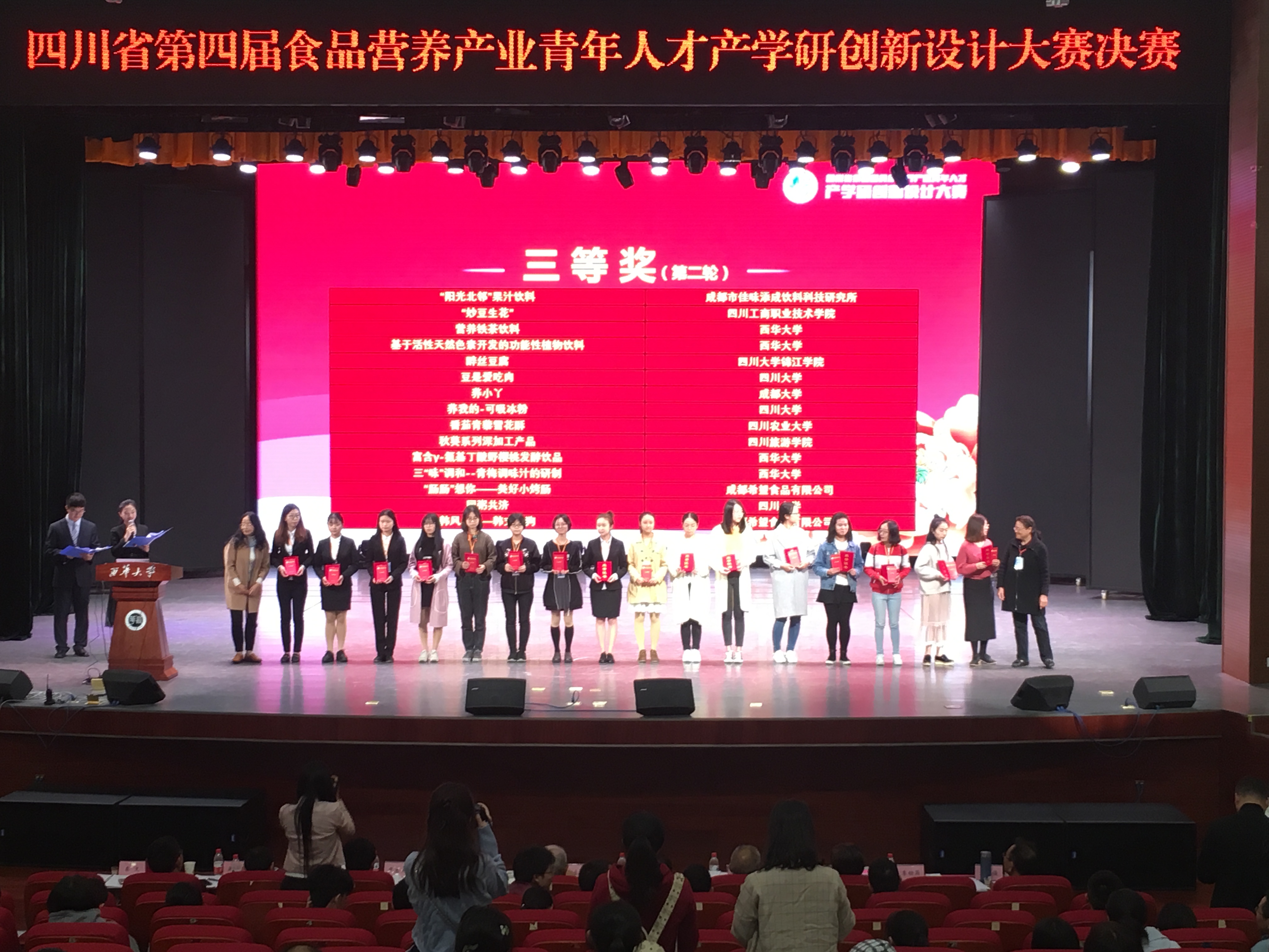为激发青年人才对食品新产品创意、研究、开发的热情,促进食品与营养相关领域的创新人才成长,由四川省食品科学技术学会、四川省营养学会主办;中国科学技术协会、四川省科学技术协会指导;四川大学、西华大学承办的2018“四川省第四届食品营养产业青年人才产学研创新设计大赛”于2018�10�13日至14日在西华大学顺利举办,圆满落幕。本次大赛也被列�2018“大众创业,万众创新”全国双创周四川预热项目�