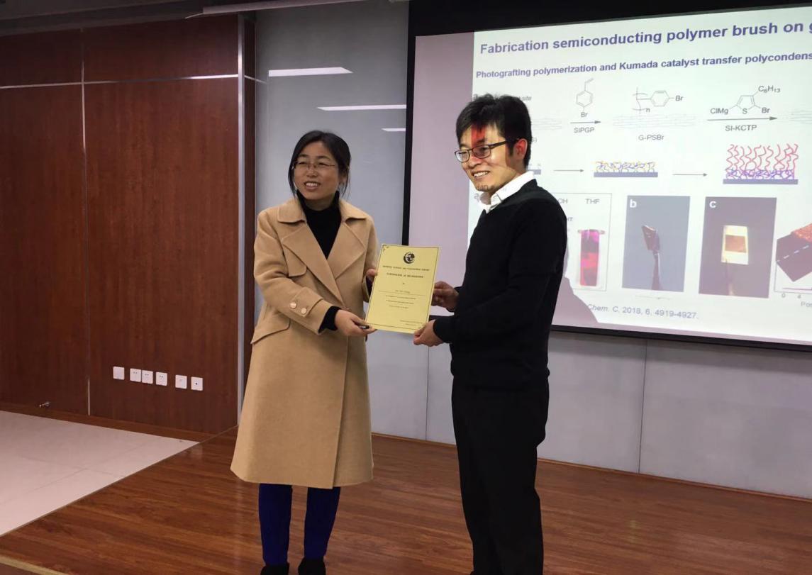 林炜教授向张涛博士颁发“生物质科学与工程”青年论坛证书