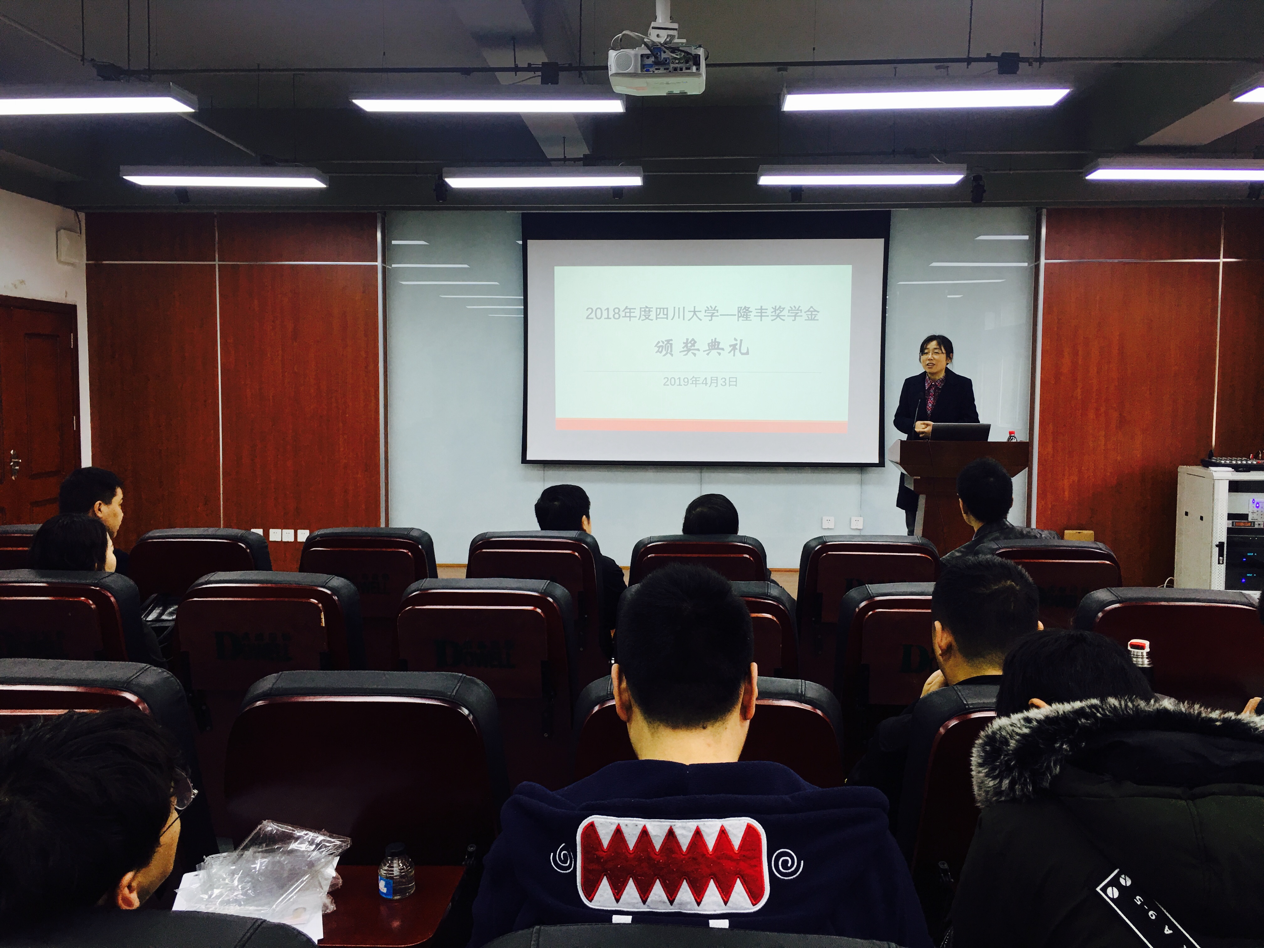 —隆丰奖学金呢”获奖学生逐一颁奖。