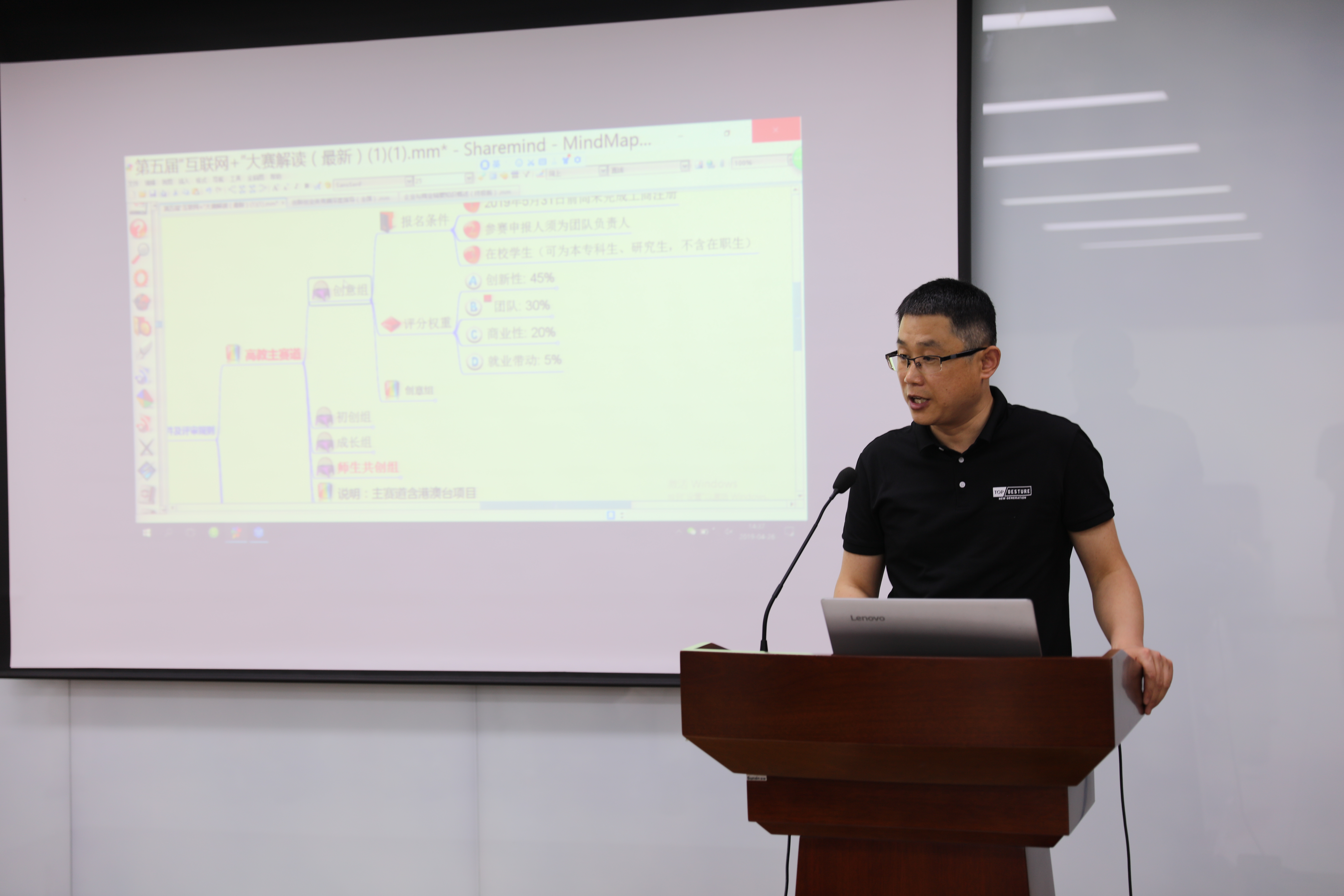 学科特点对项目来源思路给出了建议,尤其是项目目标、资源匹配、项目侧重、项目选择依据以及项目的战略构想几个方面给出了具有重要参考价值的建议。最后,张先生还就项目选择的雷区与老师们进行了分享,特别是项目创新性差、项目商业化低、同质化项目等问题建议老师们尽可能避免。通过本次培训讲解,在座教师们对“互联网+”大赛的重要意义、项目选题、项目评分规则等有了全面的了解,对今后老师们有效指导学生项目与团队具有重要的指导意义。