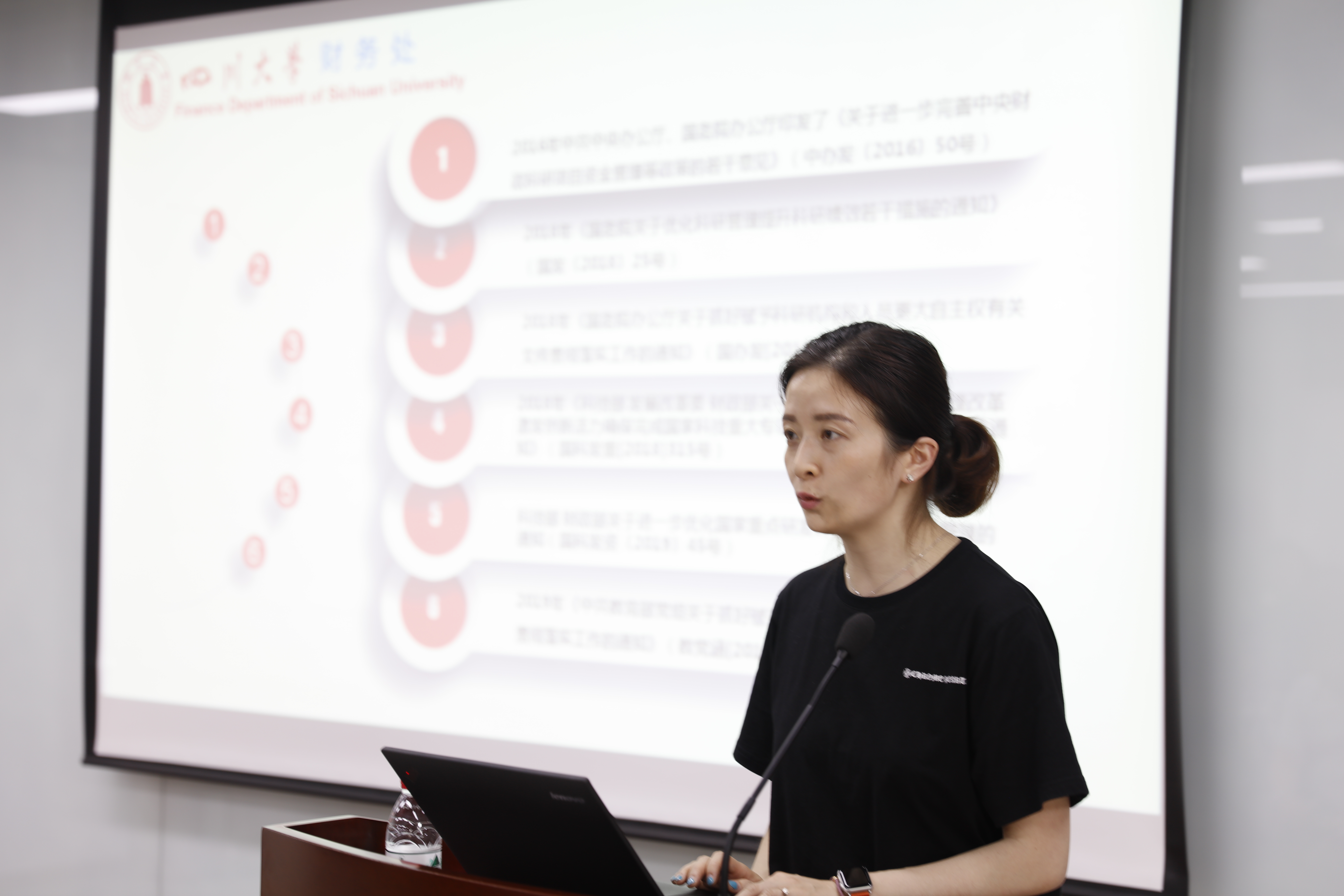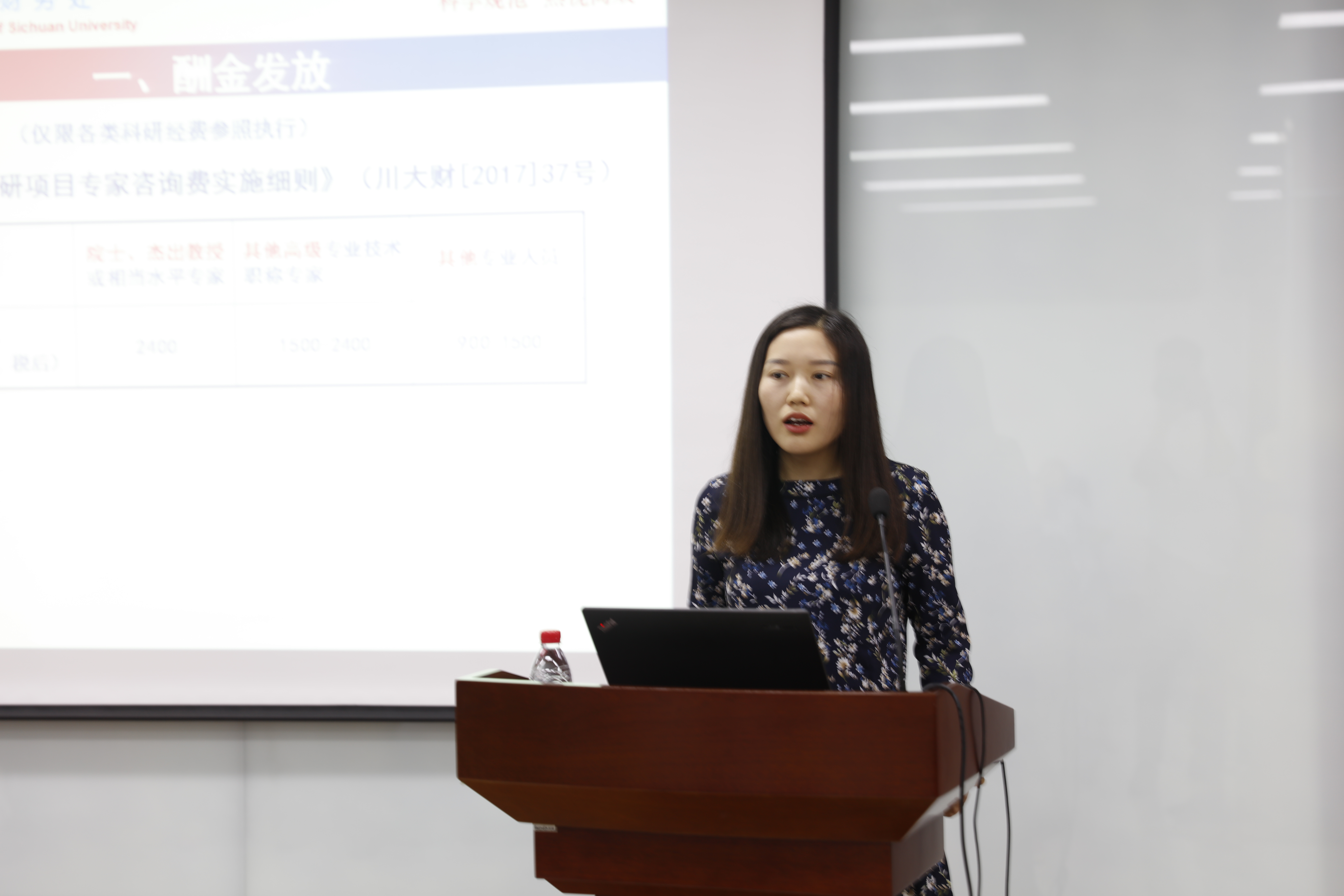 冯国涛副书记主持大会的第一项议程。学校财务处王春举副处长首先就校院两级管理体制改革中的财务管理制度改革向全院教职工作宣讲。吴思思、何明霞和张芹等三位老师分别就科研项目报账、个税政策、财务报销等教师普遍关心的内容,向全院教职工作政策解读�