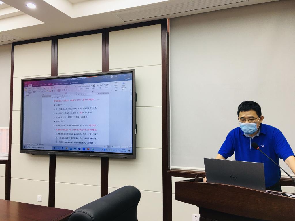 9�4日下午,学院召开全院教职工大会,安排部署新学期工作。学院领导班子、两委委员、院长助理、系所干部、科级干部在纺工附楼205会议室参会,其余教职工线上参会,会议由何有节院长主持�