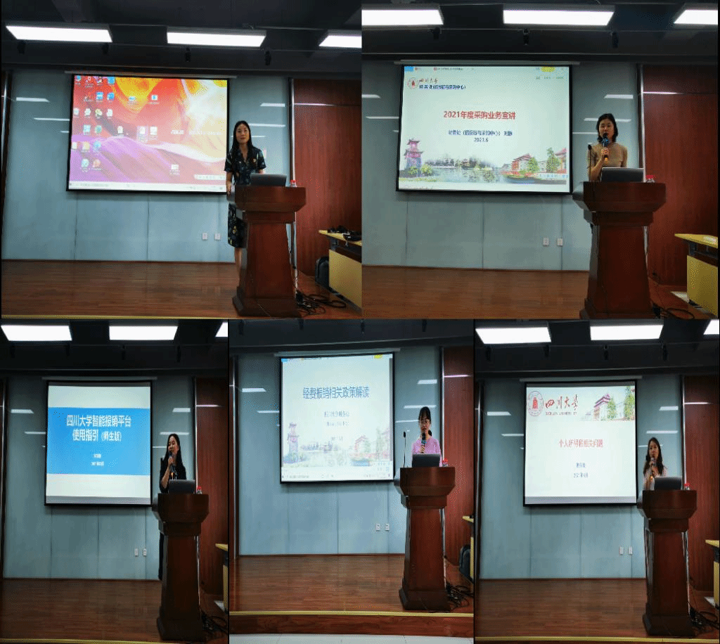 老师们的有效沟通,在财务处(招投标与采购中心)何艳主任的带领下,财务处刘静、王茜、余起漪、付稚如等老师分别就科研经费管理相关政策及业务办理、智能报销平台使用、招投标与采购相关政策及常见问题等方面进行了详细讲解,并逐一认真回答了在场老师们的疑问。