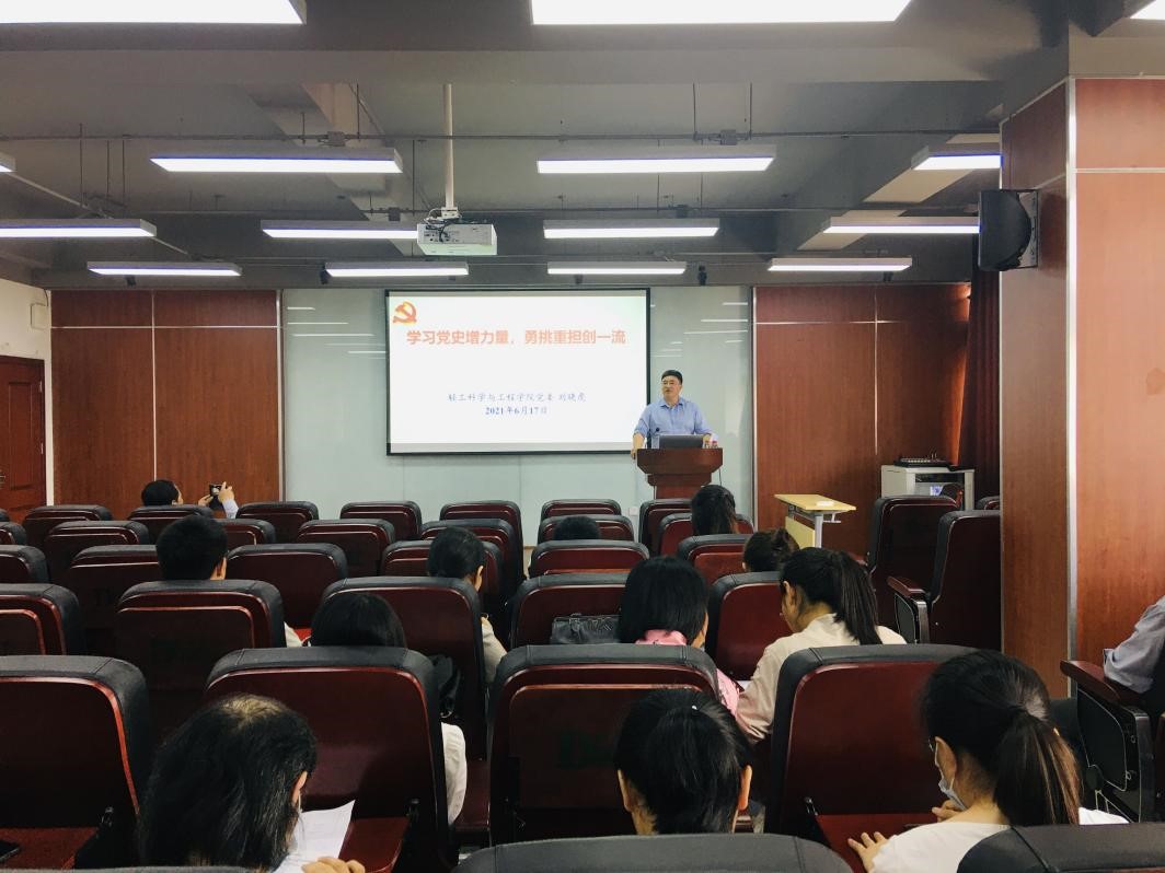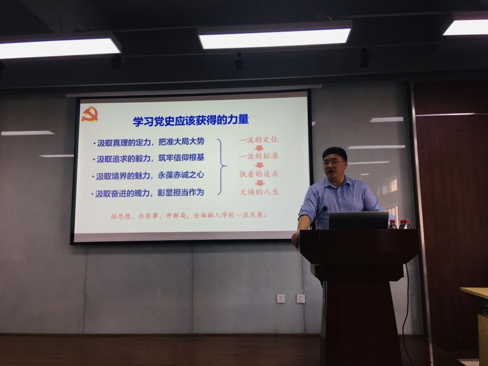 党委刘晓虎书记讲授了《学习党史增力量,勇挑重担创一流》的专题党课,会议由何有节院长主持。