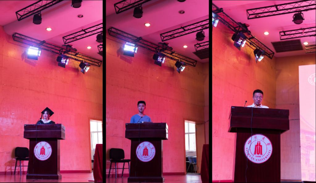 2021届毕业生代表食品科学与工程专业李静雯在校生代�2018级生物工程专业倪正�教师代表曾维�副教�分别发言