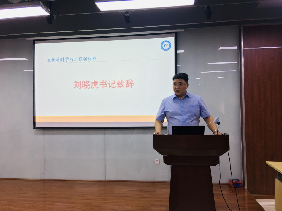 首先,学院党委刘晓虎书记作开班致辞。刘晓虎书记代表学院党政向经过严格选拔的创新班学员表示祝贺和欢迎,向为创新班建设付出辛苦努力的教师表示感谢。刘书记指出,轻工科学与工程学院的办学具有行业背景和特色传统,生物质科学与工程创新班是响应国家新工科建设、学校人才培养改革创新以及推动学院传统工科专�内涵式发展的创新性探紀刘书记强调,导师、学生、服务保障是关系创新班能否实现高水平、长效、有序发展的关键,并从这三个维度阐释了办好创新班的信心与底气。最后提出将创新班办出水平和质量的共同愿�