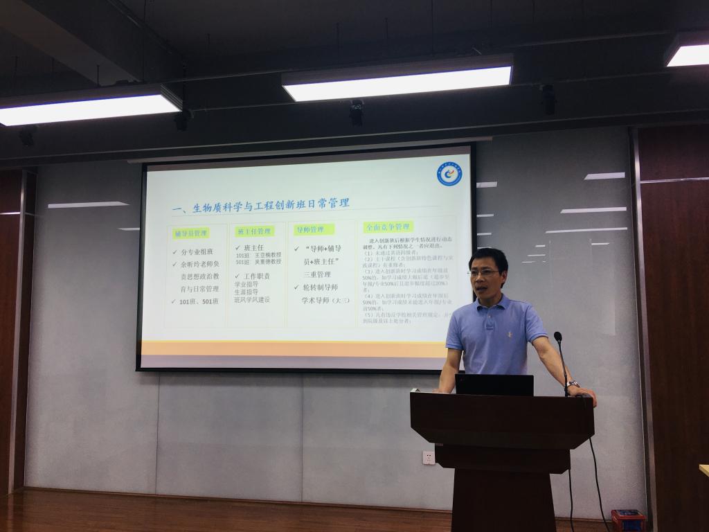 接下来,生物质科学与工程系主任林炜教授和党委副书记冯国涛老师分别介绍了创新班的培养方案与管理方案