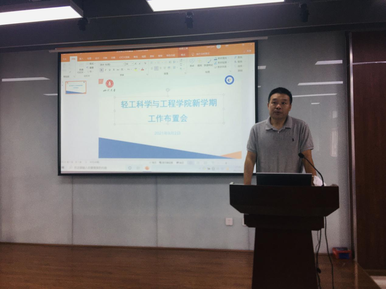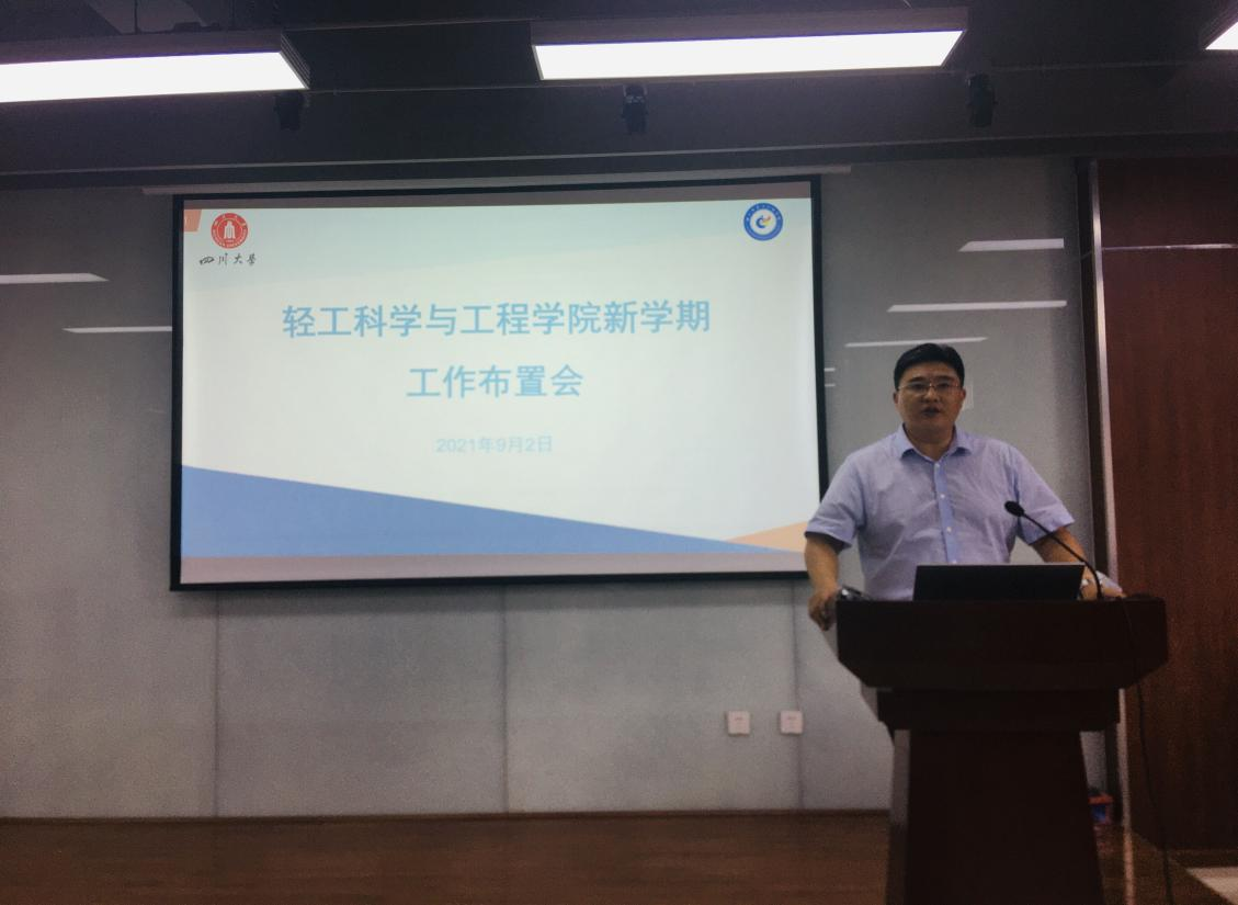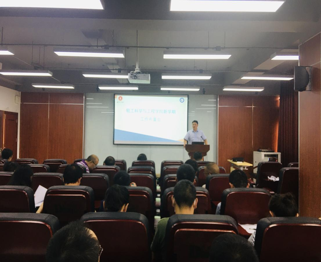 在皮革楼215报告厅举行全院教职工大会,传达学校新学期工作布置会精神,部署落实新学期工作,会议由刘晓虎书记主持。