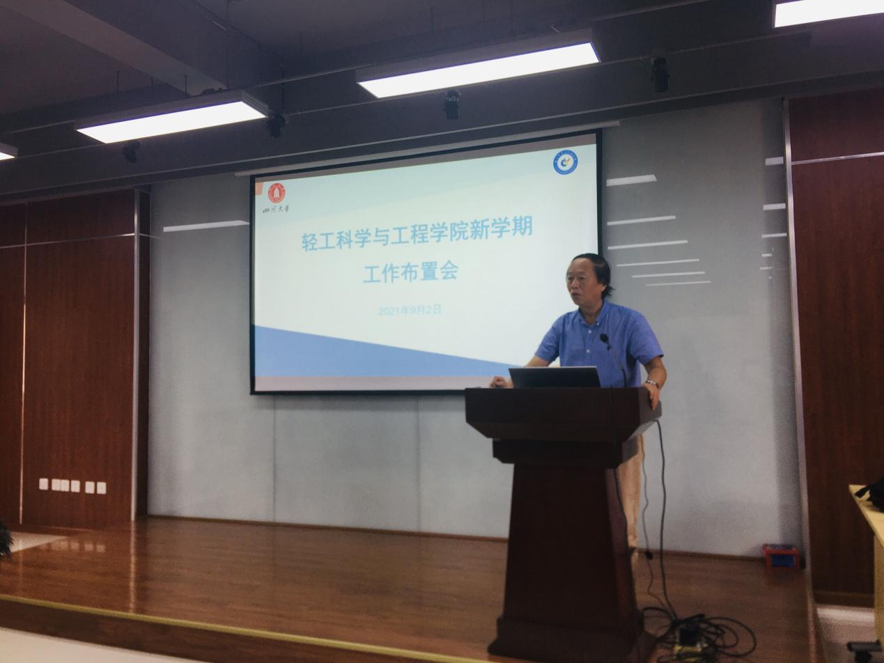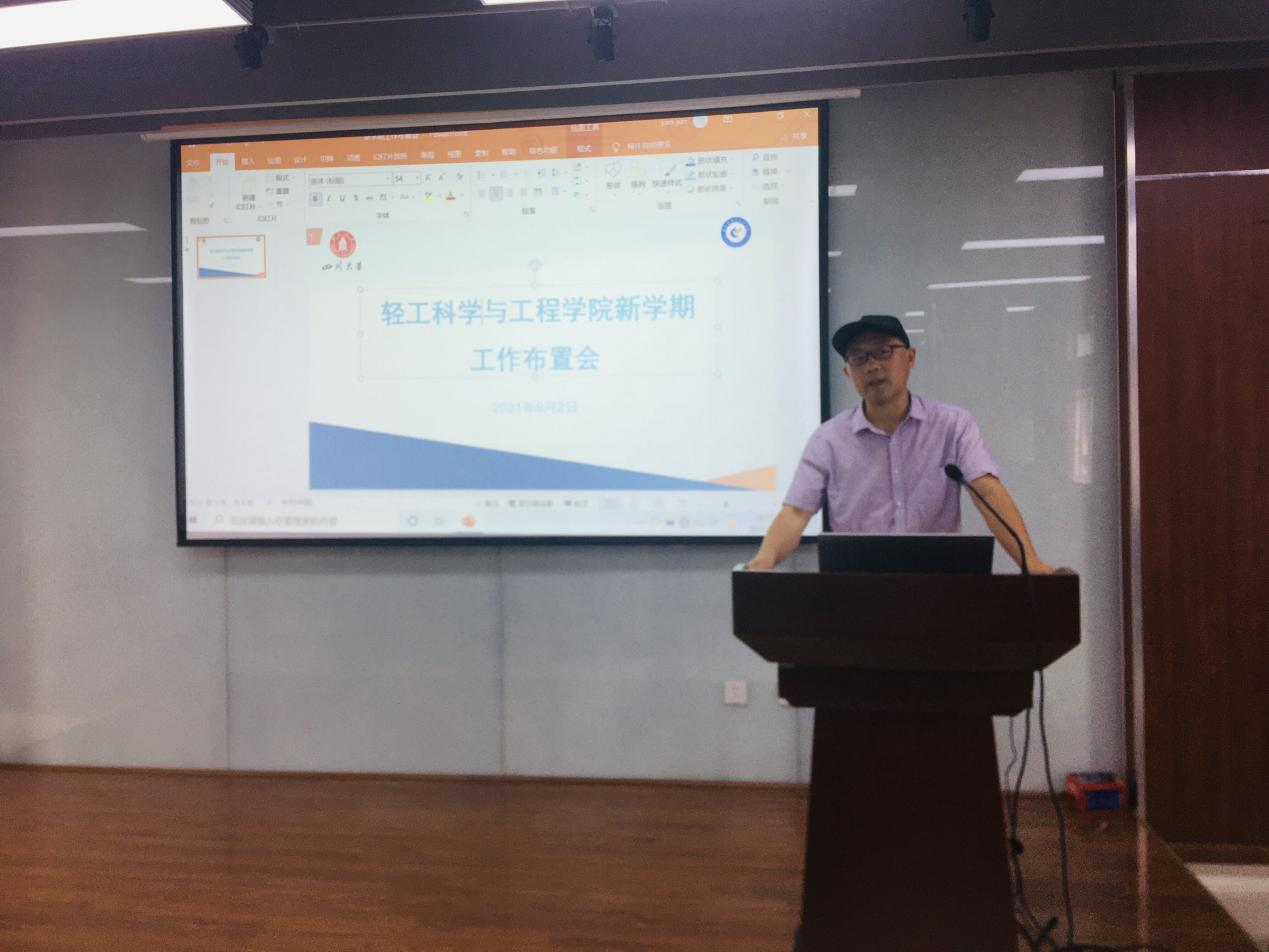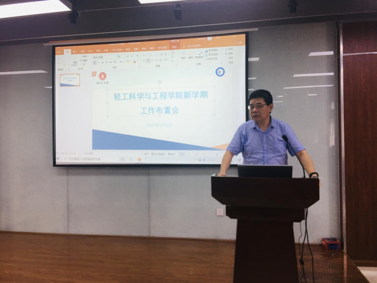 在皮革楼215报告厅举行全院教职工大会,传达学校新学期工作布置会精神,部署落实新学期工作,会议由刘晓虎书记主持。