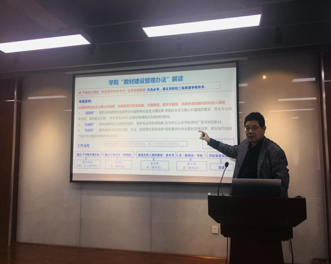 制定的“教材建设管理办法”,并就近期主要工作如专业建设、新一轮教学计划修订、金课建设等事项进行工作部署和安排。