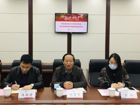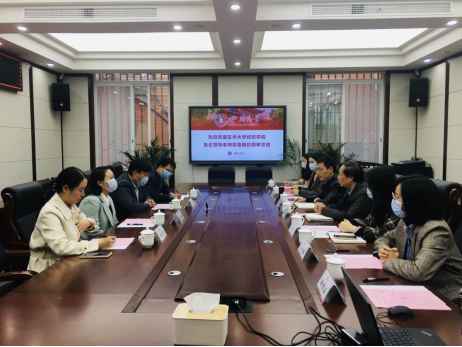 学生规模、学生工作建设等方面展开介绍。随后,双方老师重点就创新人才培养方式方法、学生党建工作品牌打造、学生学风建设、辅导员及班主任队伍建设等方面进行广泛而深入交流。